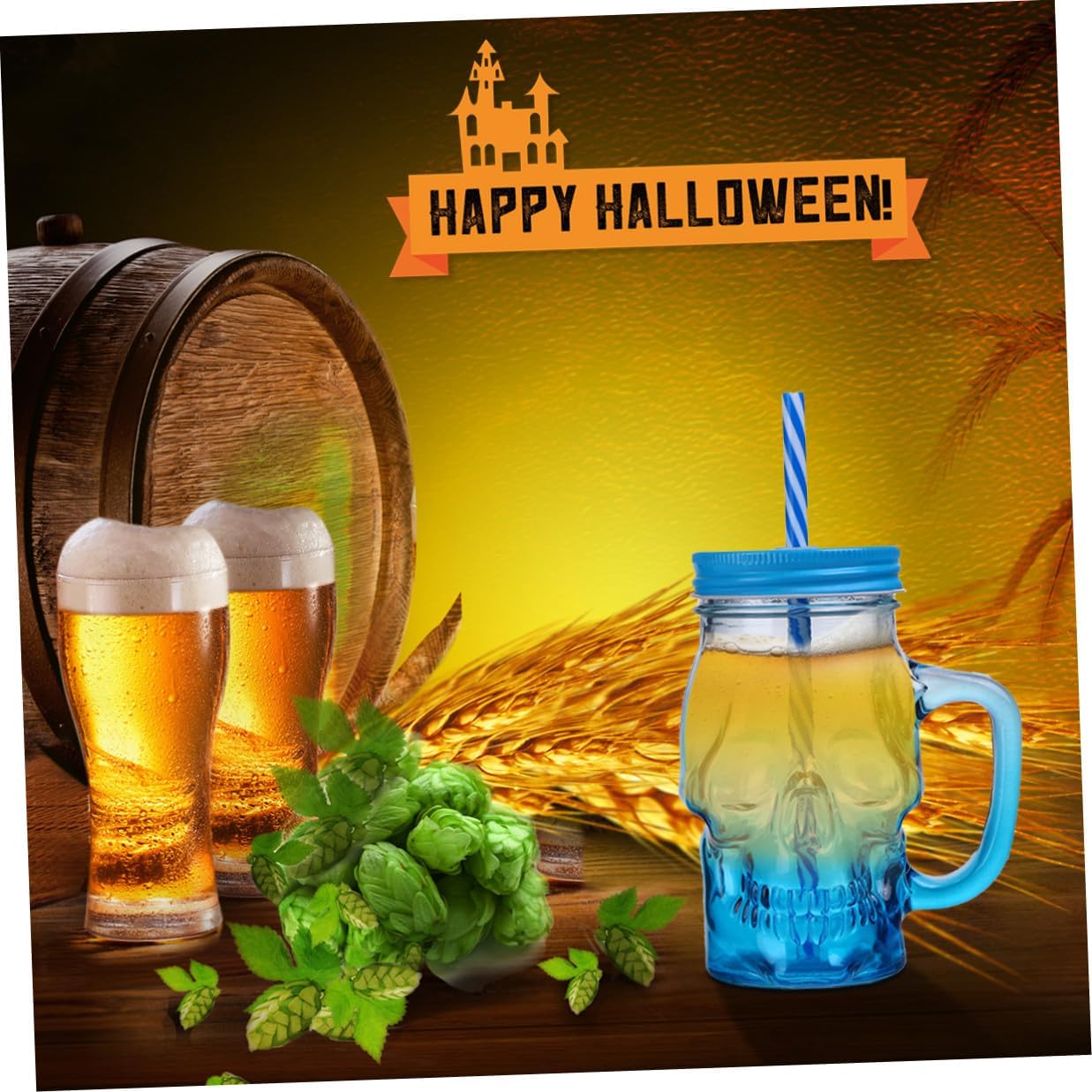 Package List 2 x beer glass (500ML) Features - Color: Gradient Blue. -Product Info:Skull glass cup - Material: Glass. - Note: Lid and straw is random color. - The 3D skull effect is more in line with the atmosphere of Halloween drinking cup. - The handle design is more convenient to use halloween party cup. - With fine workmanship, these bottles are of great quality halloween cups reusable. - The appearance of gradient color shows more personality. - Nice and great drinking bottles for outdoor sports use drinkware halloween.Goods Informationcup with skull Select , the water glass are for home and party, bar use.halloween cups with lids Smooth surface and flat base for stable standing on desktop.halloween spooky cups Halloween style design, make it more popular.halloween cups reusable This product is a drinking cup.halloween tumbler Portable handle for easy to carry