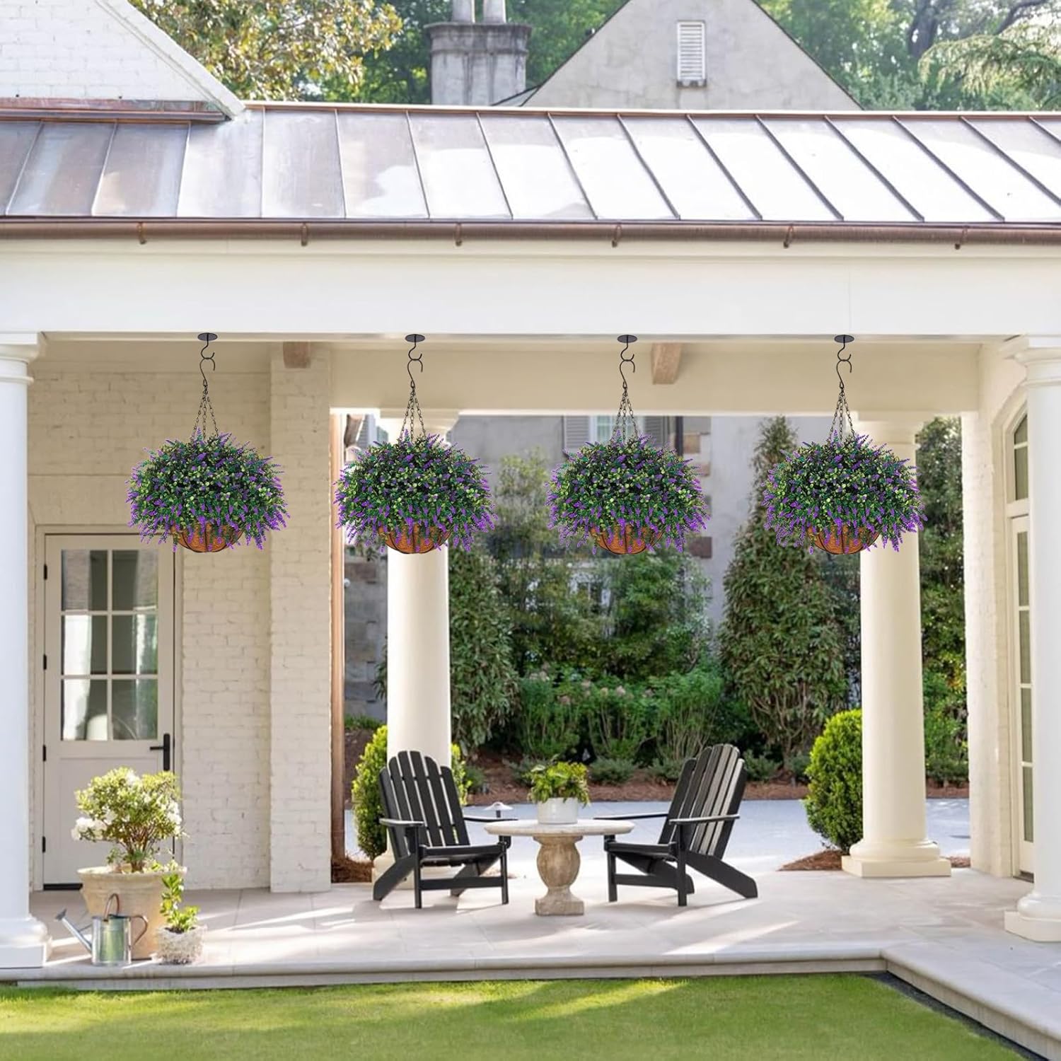 Bring Fresh Summer Energy to Any Space — Without Watering or Maintenance This 2-set outdoor artificial hanging plant bundle comes fully loaded with lush greenery and 60 PCS lavender flowers, designed to brighten your porch, patio, balcony, or terrace all year round. Each arrangement is paired with a durable coconut-fiber hanging basket, adding a natural, rustic touch that blends perfectly with outdoor décor. Key Features & Benefits 2 Complete Hanging Arrangements — Coconut Fiber Baskets Included 60 lifelike artificial flowers – full, vibrant, and incredibly lifelike Weather-resistant and fade-resistant – suitable for outdoor use in any season Maintenance-free – no watering required, no worries about wilting, no worries about weather conditions