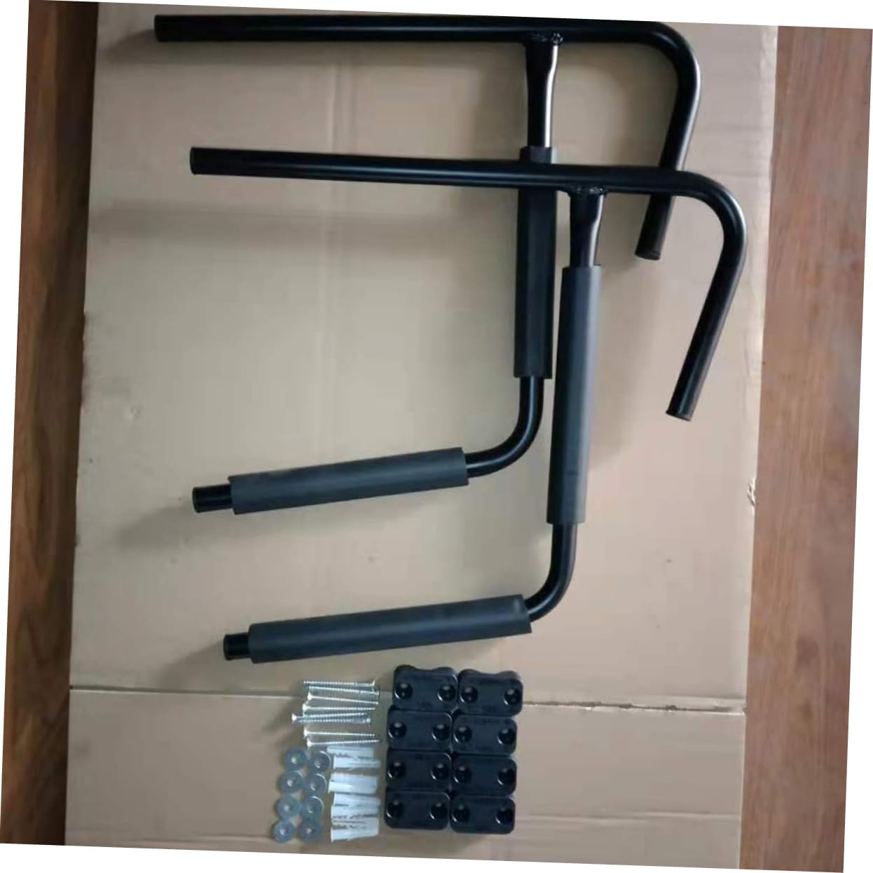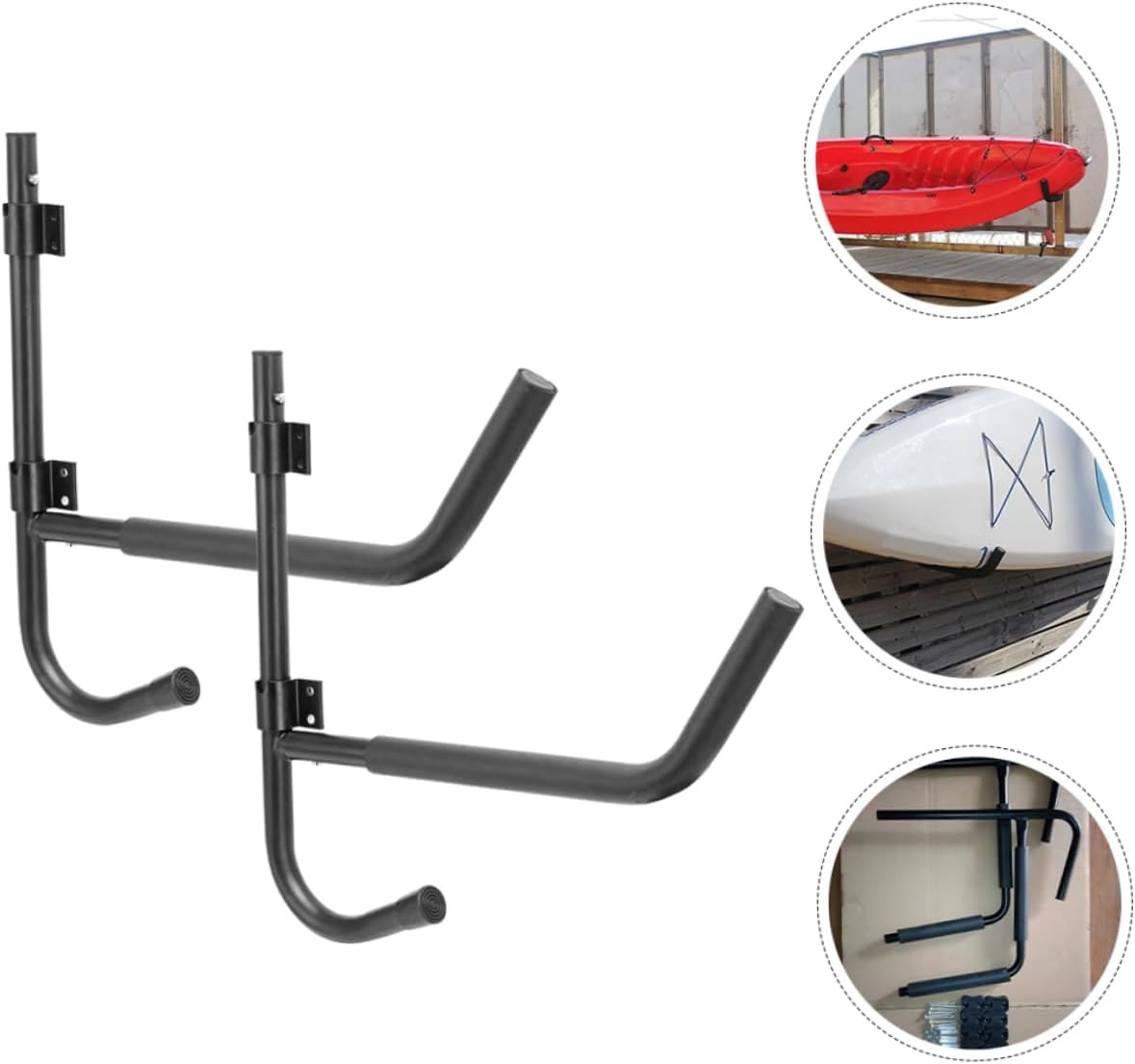 Package Include 2 x sets of kayak wall racks 8 x screws Features -Color:Black kayak storage -Material:EVA high-density protective cotton, Iron kayak storage racks -Size:43.20X41.50X2.20cm/16.98X16.31X0.86in kayak wall mount for garage - Multi-functional kayak shelf can store your kayak and canoe, bringing you more convenience kayak racks for outdoor storage. - The wall-mounted design does not take up space and is more convenient to access canoe wall storage. - Using EVA high-density protective cotton and iron material, it is durable and can be used for a long time. You can show your kayaks, simple and convenient kayak racks. - Adopts precision production to the stable characteristics and high reliability metal boat holders. - Easy installation and simple operation, suitable for professionals and amateurs wall storage rack.Goods Descriptionwall rack Give you the choice.metal canoe holders Using EVA high-density protective cotton and iron materials, foldable design for easy storage and space saving.kayak wall rack Still looking for a multi-purpose kayak paddle storage rack? Then, our kayak display stand is your choice