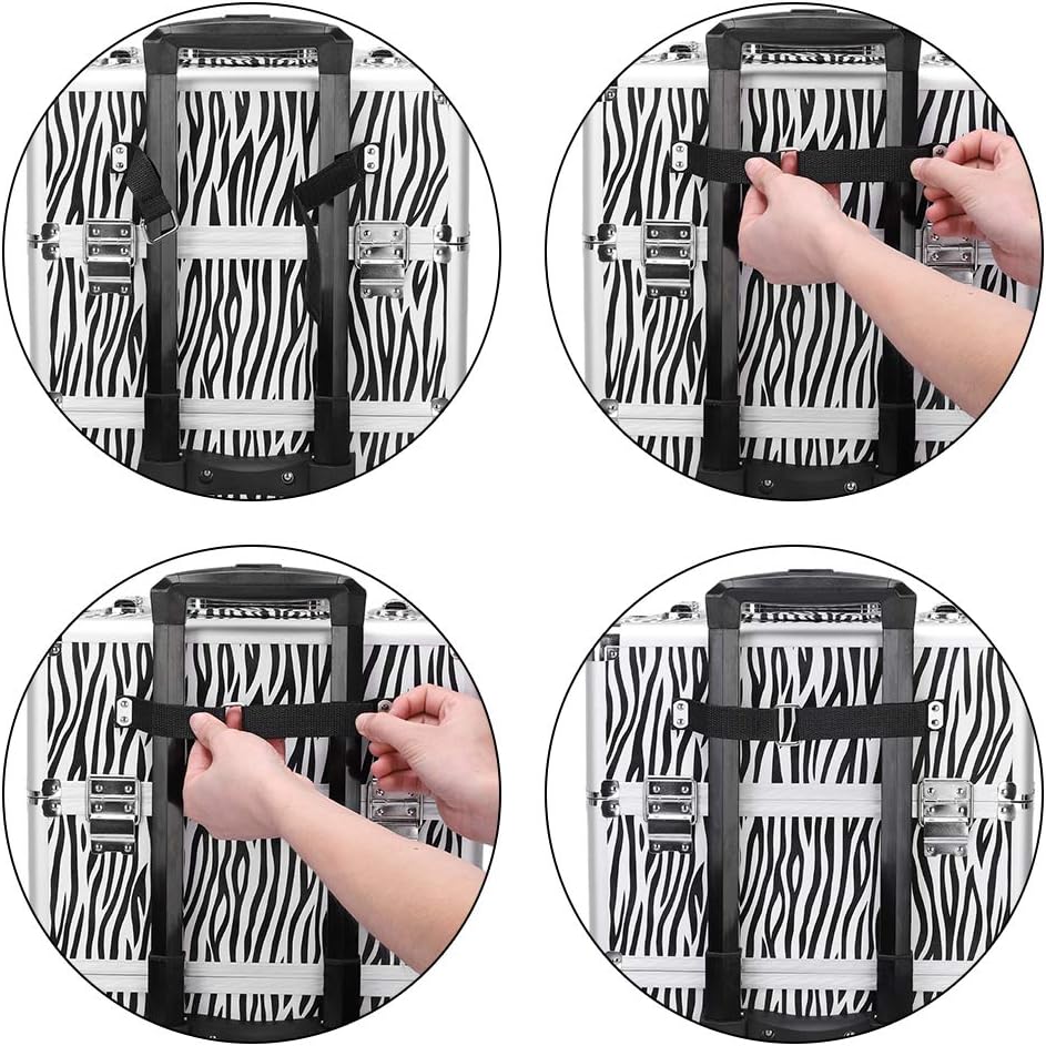 Features:💄【HIGH QUALITY】: Cosmetic case is made of aluminum with high quality, solid and durable in use. 📿【DESIGN】: Cosmetic case adopts beautiful designed cosmetic case comes with fashionable style, elegant color and easily transportable.💍【CONVENIENT】: trolley makeup case sits on four high-quality wheels for quiet and labor-saving rolling. Detachable wheels can be easily removed or replaced if needed. Besides the top carry handle.💎【PRACTICAL】: With 3 in 1 design, this makeup case is nice to look and easy to use. The unique design of the grip handle makes you comfortable, stylish and elegant.🎀【SUITABLE FOR】: This chic trolley makeup case is a must-have piece for professional manicurists, hairstylists, beauticians, nail tech students whoever possesses a mountain of cosmetics should have their own makeup organizer. Specifications:1. Material: Aluminum2. Overall Cosmetic Box Organizer Trolley Dimensions: (14.17 x 9.45 x 27.95)" / (36 x 24 x 71)cm (L x W x H)3. Overall Trolley Makeup Case with Handle and Casters Dimensions: (14.17 x 9.45 x 40.94)" / (36 x 24 x 104)cm (L x W x H)4. Top Section: (14.17 x 9.45 x 11)" / (36 x 24 x 28)cm (L x W x H)5. Bottom Section: (14.17 x 9.45 x 16.54)" / (36 x 24 x 42)cm (L x W x H)6. Color (Optional): Black&White, Pink, Black, Silver7. Weight: 246.92oz / 7000gPackage Includes:1 x Cosmetic Case1 x Shoulder Strap4 x Keys4 x Detachable Universal Wheels