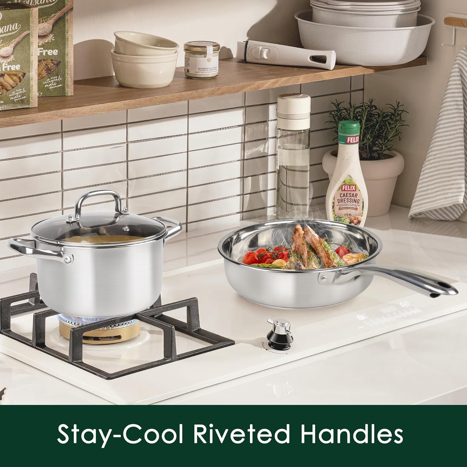| Included Components | 1.5qt saucepan, 2.5qt saucepan, 3.7qt saucepan, 4.8qt saucepan, 5.7qt stockpot, 10’’ saute pan, and 6 lids |