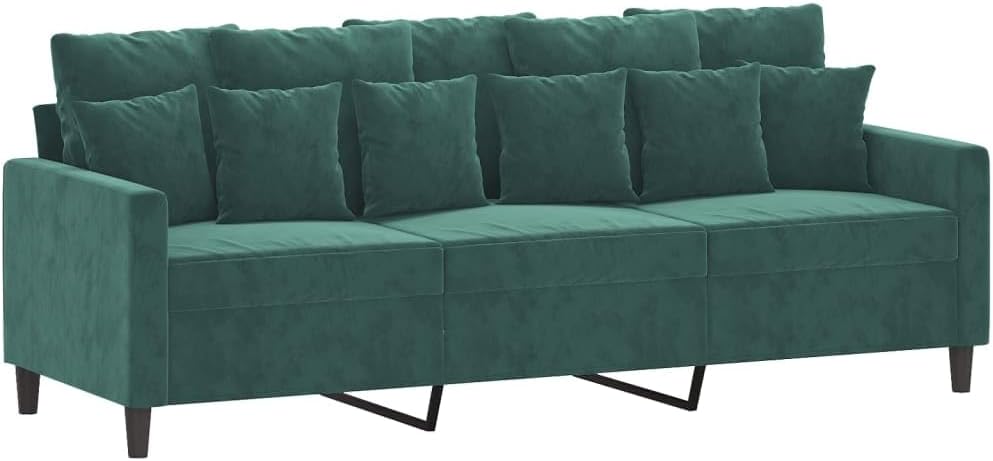 This Dark Green Velvet 3-Seater Sofa is a lovely mix of style and comfort, made to be the star of your living room. Its rich texture and vibrant hue uplift any space while giving ample seating for family and friends, creating a warm atmosphere perfect for unwinding and entertaining.Modern Velvet Upholstery: The luxurious velvet fabric feels soft and is visually striking, adding elegance to your home decor.Ample Seating Capacity: Comfortably fits up to three adults, making it perfect for family get-togethers, movie marathons, or social events.Designed for Comfort: With spacious cushions, it offers a soft and supportive experience, ideal for lounging or reading.Stylish and Functional: With a modern look, this sofa blends seamlessly into various settings including living rooms, lounges, and offices.Sturdy Construction: Built on a solid frame with metal legs, it offers great stability for everyday use.Colour: Green Shape: RectangularMaterial: Farbic VelvetIndoor/Outdoor: Indoor OnlyCover Included: NoRoom: Living RoomCapacity: 3-seaterMaximum Number of People: 3Maximum Weight: 110 kgDimensions: 198 x 77 x 80 cm (W x D x H)Leg Height: 41 cmWeight: 26 kgSeat Depth: 66 cmSeating Capacity: 3Swings: NoDelivery Contains: 3-seater SofaAssembly Required: YesRecommended Number of People for Assembly: 2SKU: 359315