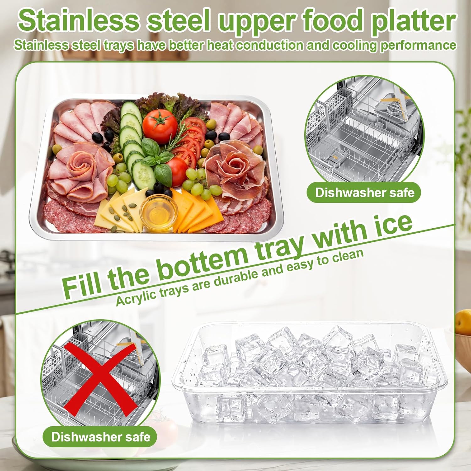 | Product Care Instructions | Dishwasher Safe (Stainless Steel Tray), Hand Wash (Plastic Tray) |