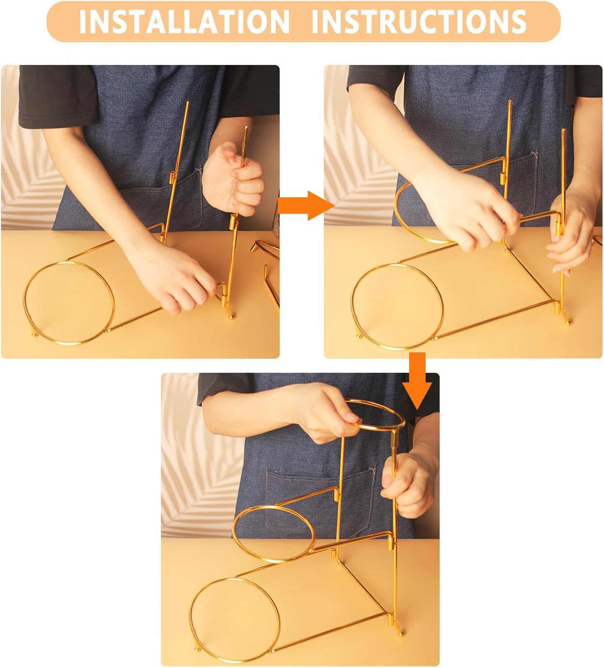 LIUYWYHCF 3-Tier Serving Rack with Ceramic Serving Bowls, Foldable Gold Stand with 3 Pieces Gold Rim Large 7.1"+8.5"+10.2" Bowls Bowl for Food Display, Fruit, Dessert Server Display and Entertaining ELEGANT DESIGN - This 3-tier serving rack features beautiful gold holders and a combination of 3 white porcelain serving serving Bowls with gold edges, the gold on the edges of the serving Bowls will not come into contact with the food, you can use it with confidence; Makes a stylish addition to any table setting . Multiple styles available - We have 2 and 3 tier serving rack trays, as well as 2 and 3 tier serving bowls in our store, you can also use the porcelain serving Bowls trays alone, perfect for parties, banquets, events, special occasions or any special occasion where food presentation is required The occasion makes the entire entertainment even more perfect. Sturdy and Foldable - The gold stand is made of forged metal, strong enough to hold heavy plates, and the foldable design makes it easy to store when not in use, saving space in the kitchen. LARGE CAPACITY - The large 7.1"+8.5"+10.2" Bowls provides plenty of space for appetizers, desserts, fruit, cupcakes, charcuterie and more. The three-tier serving rack beautifully displays your food and makes the perfect serving Bowls for your entertaining or party. Easy to Assemble and Clean - The stand can be easily assembled and disassembled for storage, the serving Bowls is dishwasher safe and easy to clean; the edge of the serving Bowls is gold plated, washing in the dishwasher will dull the gold color, in order to maintain the gold luster permanently, We recommend: hand wash or wipe with a damp cloth, the surface of the serving Bowls is smooth and easy to clean, wipe with soapy water and a damp cloth and it will be clean. GIFT OPTIONS - Our packaging is great so each product reaches you safely, and its versatility makes it the perfect gift for a variety of holidays, weddings, housewarming gifts, birthdays, Christmas, Thanksgiving or other special occasions .