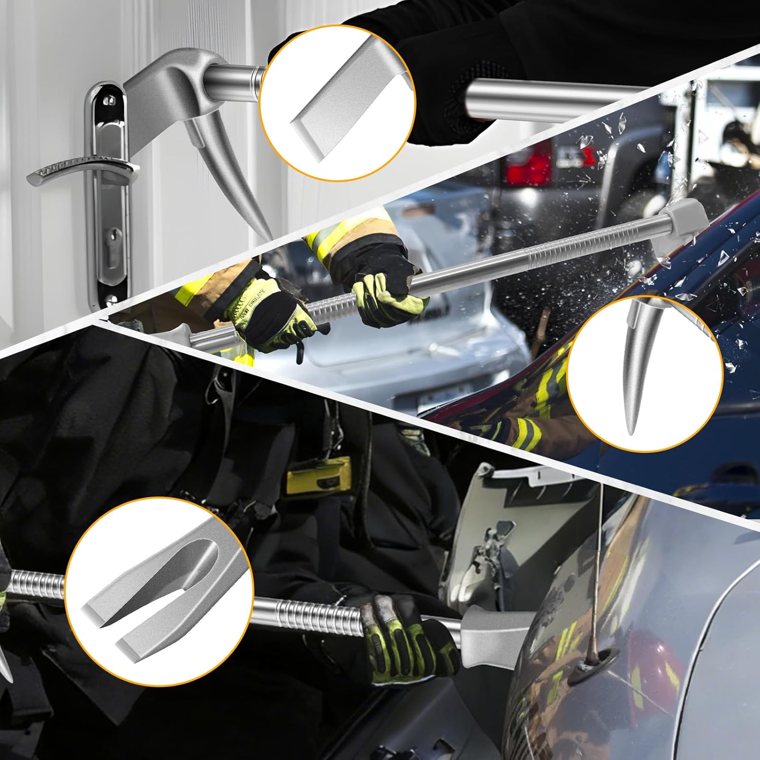 HALLIGAN TOOL Specification: Material:45 Gauge Steel Surface: Nickel plating Length: 30 inches Weight: 11 lbs Please Note: This tool is exclusively designed for professional emergency responders, fire department personnel and authorized security teams. Intended solely for emergency situations including fire rescue, medical emergency access and disaster relief operations. Unauthorized use for illegal entry is prohibited. The seller is not liable for improper or unlawful use of this product. Feature: Multi-functional Emergency Entry Tool:Features a smooth-incline Duckbill for rapid access to windows/doors, a precision-curved Pike for latch access in secured areas, and sharpened claws for controlled prying—handle complex emergency tasks like prying, breaking and penetrating quickly without frequent tool changes, built for emergency response scenarios. Durable Construction:Made with high-strength steel (bright electroless nickel finish) for corrosion resistance; machine-grooved non-slip Grip ensures secure handling in high-stress situations; the non-slip handle enhances grip friction and tool control. Versatile Emergency Features:This 30-inch tool integrates three head designs: fork, pointed and flat tip; recessed nail puller adds utility for debris clearing in disaster relief; claw radius provides balanced leverage for controlled, targeted use. Authorized Use Only:Exclusively for trained emergency responders (fire, rescue, security personnel); requires proper protective gear during operation—intended solely for legal emergency scenarios, ready to use right out of the box with no extra adjustments.