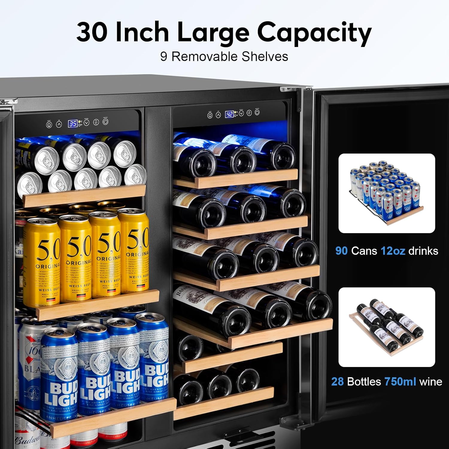 30 Inch Wine and Beverage Refrigerator and 24 Inch Wine Cooler 173 Bottles Bundle