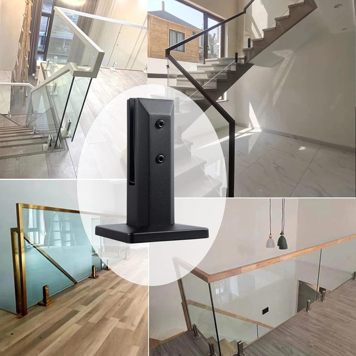 • PACKAGE INCLUDES: including square glass clip, grounding bolts, rubber gasket and base protection cover (internal gasket is divided into flat and inclined plane, the inclined plane is suitable for use when installing stair railings, please let us know if you need)