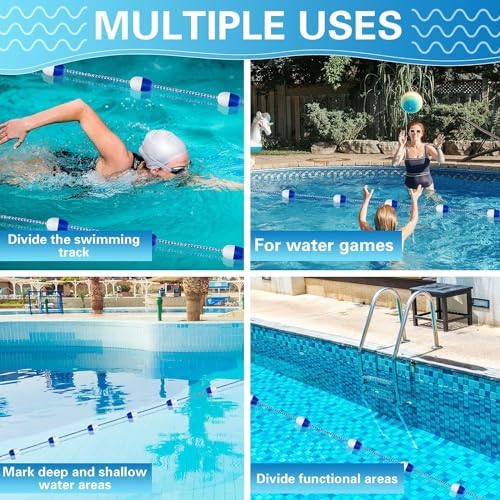 Introducing our Swimming Pool Safety Divider Rope and Float Line, designed to enhance safety in your swimming environment. This essential accessory effectively separates the deep and shallow ends of your pool, providing peace of mind for parents and family members. Whether you're creating designated swimming lanes or sectioning off hazardous areas, this divider is an ideal solution for both residential and commercial pools. Crafted from durable polyethylene and reinforced with steel wire, our safety rope is built to withstand the elements while ensuring long-lasting use. The stainless steel hooks ensure secure attachment, making setup a breeze. The vibrant blue and white color scheme not only adds a stylish touch but also enhances visibility, allowing you to easily identify swimming zones. Featuring three floating buoys per meter, each measuring 7cm x 10cm (2.8in x 4in), our divider rope provides clear demarcation in the water. The buoyant design helps keep the rope afloat, making it perfect for use in swimming pools, waterways, and other aquatic environments. Easy to install and maintain, this swimming pool divider rope is perfect for families who prioritize safety during pool time. Its wear-resistant properties ensure it stands up to frequent use, providing a reliable barrier for your loved ones. Please note that slight variations in size (1-2 cm) may occur due to manual measurement, and minor color differences may arise from lighting and device settings. Enjoy a safer swimming experience with our Swimming Pool Safety Divider Rope and Float Line!
