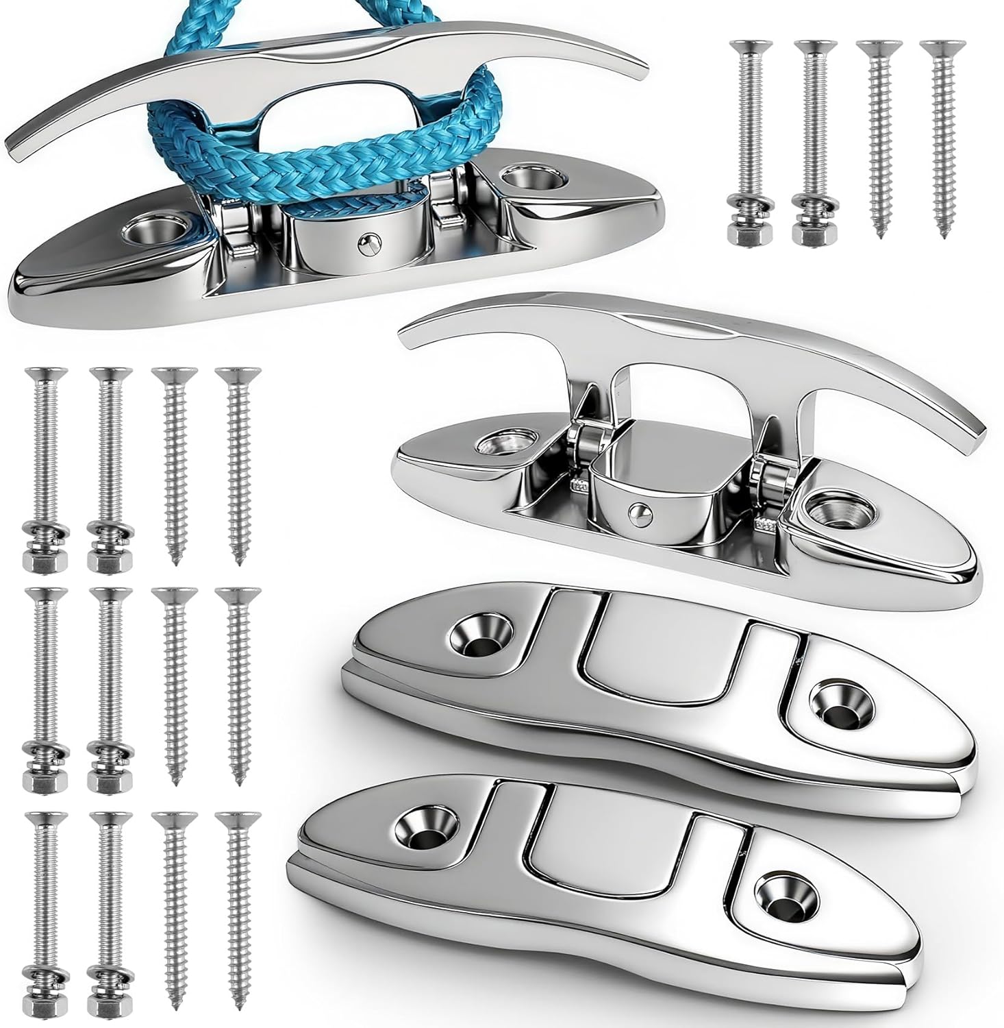 Product FeatureBoat Folding Cleats,Flip Up Dock CleatMaterial: 316 Stainless Steel Material Surface PolishingHardware included: Stainless Steel Bolts and Nuts and ScrewsPackage List316 Stainless Steel Folding CleatsStainless Steel Bolts and NutsStainless Steel Screws