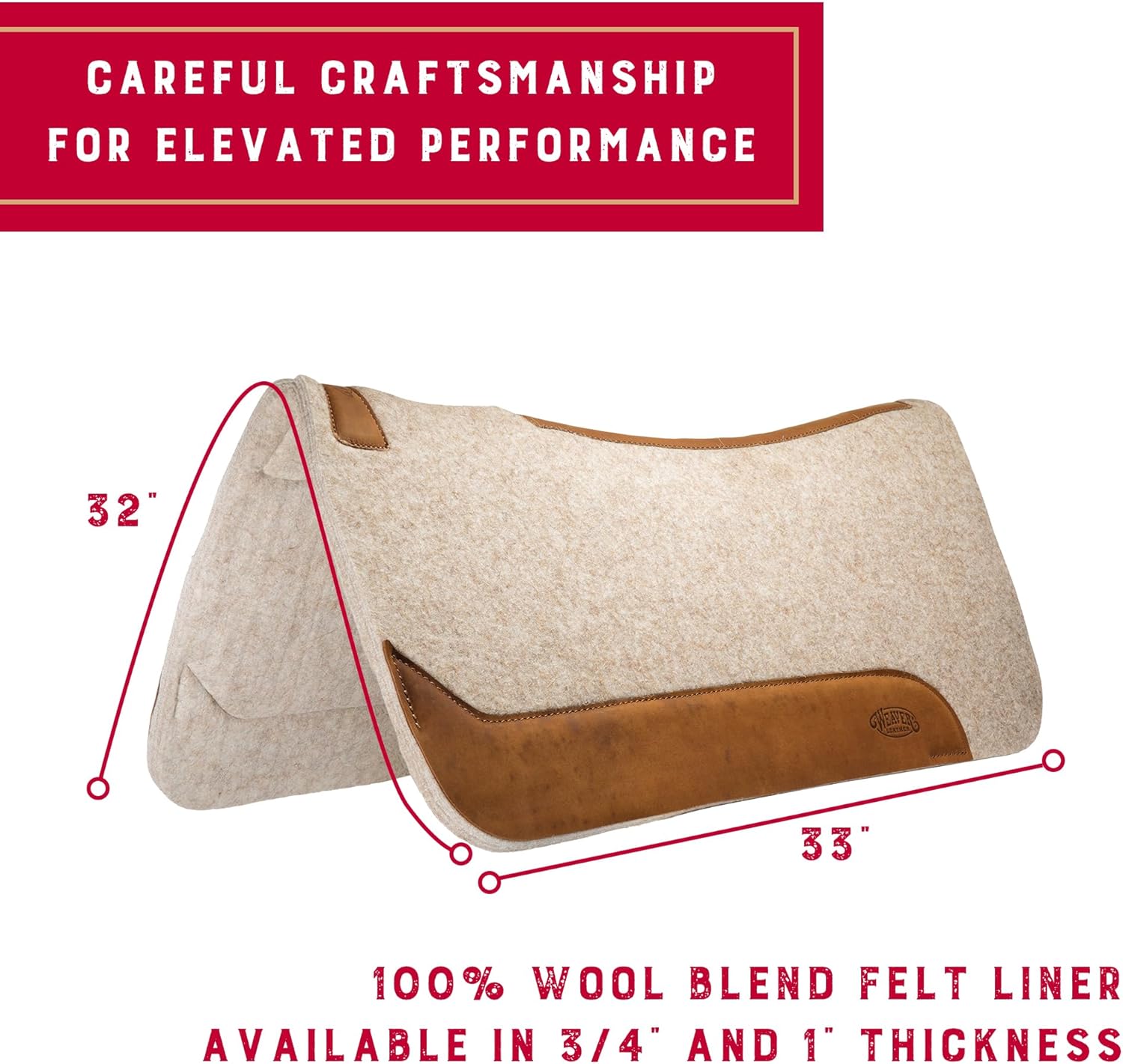Weaver Equine Horse Pads for Saddle: Our Contoured Wool Blend Felt saddle pads are the ultimate solution for a comfortable and stable riding experience. Engineered with advanced moisture wicking and shock-absorbing technology, this soft saddle pad effectively relieves pressure points, ensuring your rides are smooth and enjoyable. Crafted from high-quality imported materials, this western saddle seat cushion cover not only provides extra cushioning and moisture-wicking action but also ensures the padded horse seat remains cool and comfortable, even during long rides. Hand wash recommended for lasting design and feel. Careful craftsmanship and exceptional fit allows you to focus on your ride without constant adjustments. The western horse tack pad equally distributes weight, reducing strain on both your back and your horse's back. With its innovative design, this horse pad alleviates pressure points, promoting better control, training performance and endurance for both rider and horse. Whether you're a casual rider or a seasoned equestrian, our diverse saddle pads are a must-have for anyone seeking extra comfort and stability. An indispensable equine accessory, horse saddle pads make great gifts for horse owners and riders alike.