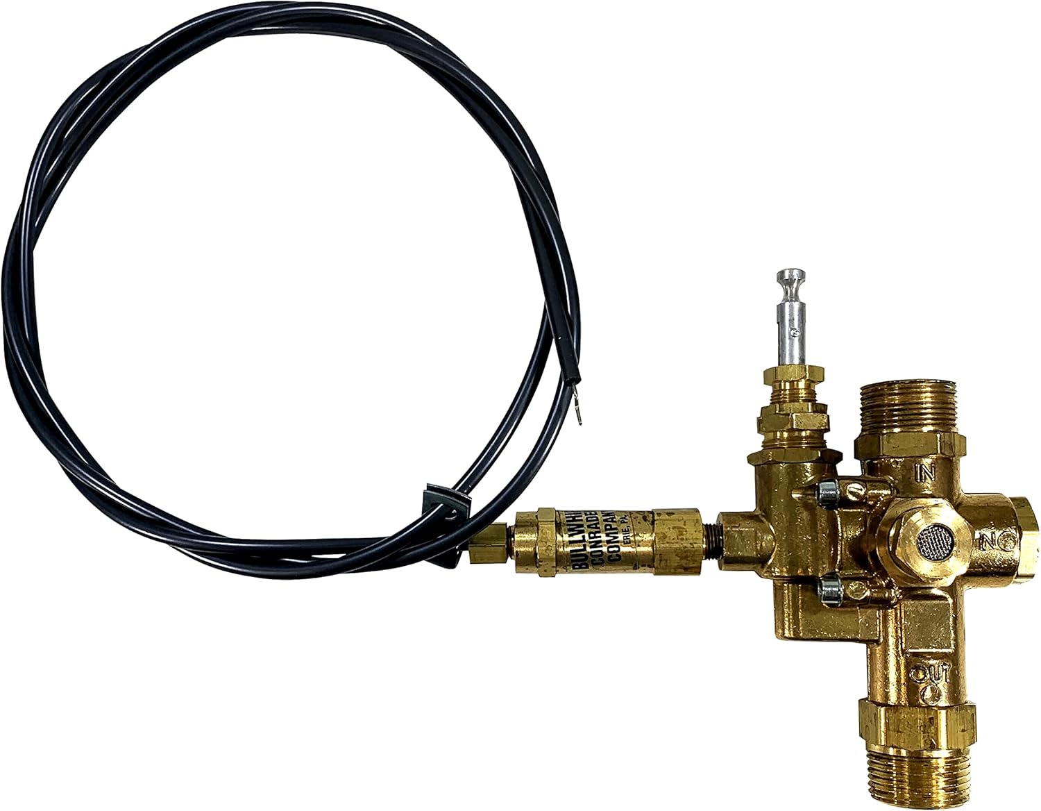 This listing is for 6.5HP Gas Engines and Below. COMBINATION VALVE SPECS: Conrader Piloted Unloader Check valves are an all-in-one combination valve to run an air compressor for continuous operation. The valve includes a pilot valve, discharge unloader valve, and check valve. This can be used on gas engine or electric motor driven air compressors. In operation, the check valve prevents back flow as the compressor builds pressure. The pilot remains closed until the downstream pressure reaches the unload setting. The pilot then opens and pressurizes the unloader valve. This causes the unloader valve to open and vent the excess air from the compressor to the atmosphere. As the compressed air downstream is used and the pressure drops to the load setting the pilot closes and depressurizes the unloader valve. The unloader valve then closes and the pressure begins to build again and repeats the cycle. THROTTLE CONTROL SPECS: Conrader Cable Style Throttle Controls are mounted on the pilot valve or elsewhere on the compressor and the cable end is connected to the engine throttle arm. These are of brass construction with viton seals, stainless steel springs, and stainless steel cable. The cable is permanently lubricated and is self cleaning. Routing clamps are used to mount and protect the cable. Please determine a comfortable distance between the unloader and throttle arm. The cable does not have to be straight to function properly. THROTTLE CYLINDER: Brass Construction, Cable / Whip: Stainless Steel Construction with Protective Shield. Viton O-Ring, Stainless Steel Spring Material. Min. Pressure 80 PSI, Max Operating Pressure 500 PSI, Retracted Spring Force: 6.7 lbf, Stroke Length: 0.65 inch.