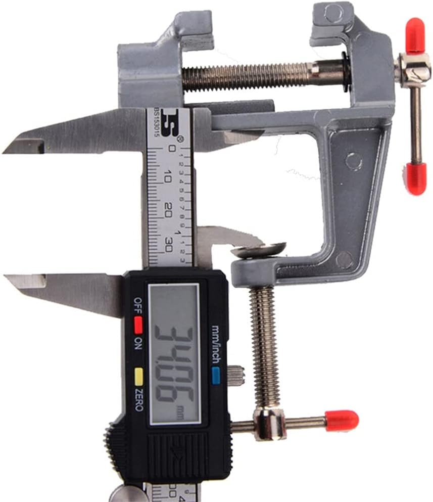 Cast Aluminum Body - Steel Screw and Handle - High Strength and Light WeightVery Portable - Can be taken along and used AnywhereGreat for Smaller Projects - Jewelry, Hobbyists, RC Cars and Planes, Electronics and Much MoreNote: Fixed any plane thickness below 35mm/1.38"good toughness, high hardness, sturdiness and durability.Material:AluminumSize:Maximum Jaw Opening: 30mmMounting Clamp Maximum Depth: 40mmLength:9cm/3.54" Width:9cm/3.54" Note:Due to the different monitor and light effect, the actual color of the item might be slightly different from the color showed on the pictures. Thank you!Please allow 1-3cm measuring deviation due to manual measurement.Packing list:1*ViseThe splint is fixed with screws, fixed on the corner of the table, or it can be fixed with perforated screws, which is more stable.
