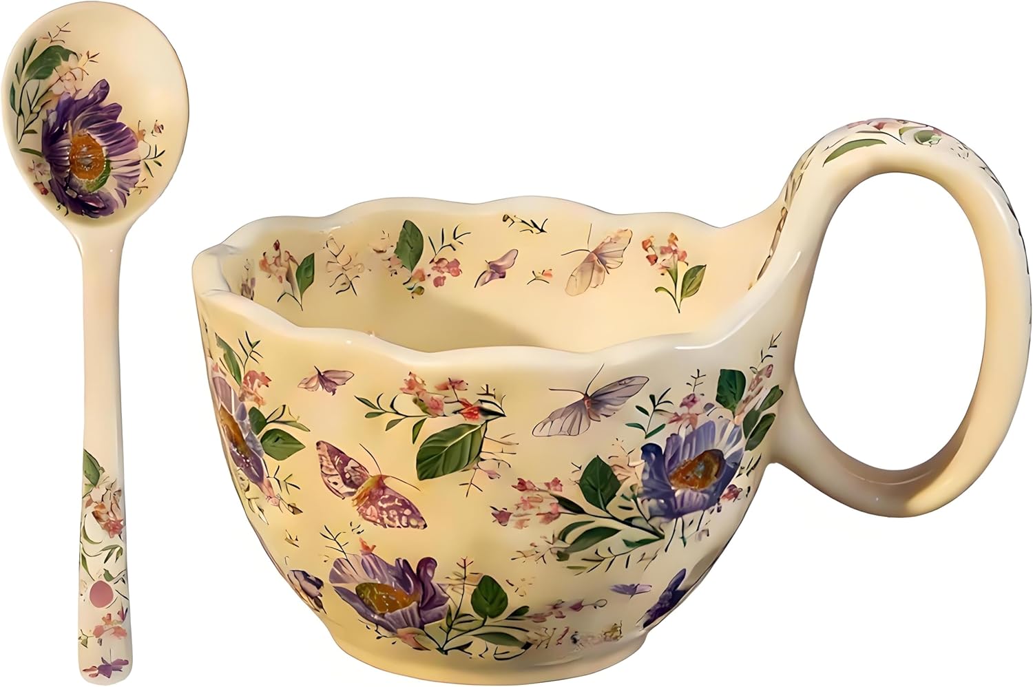 | Product Style | Butterfly Love Flower - 35.27 Oz - Handmade Relief Loop Handle Soup Bowl with Spoon |