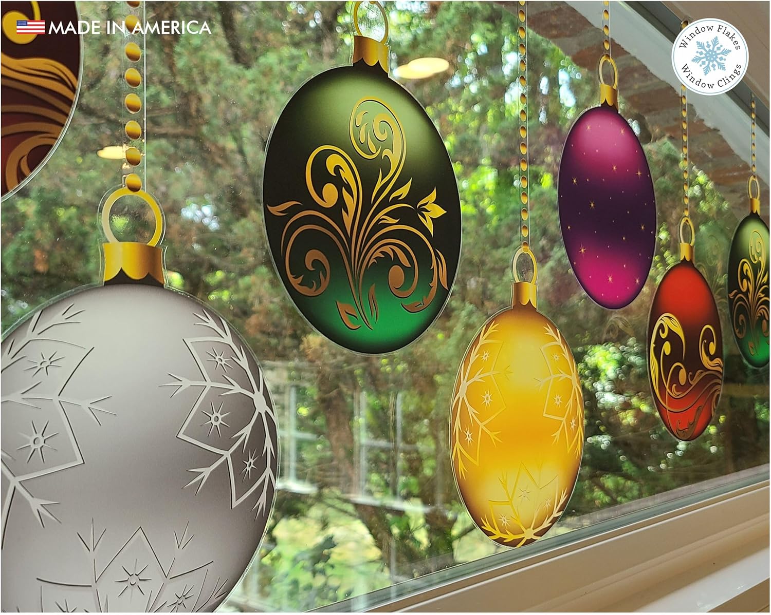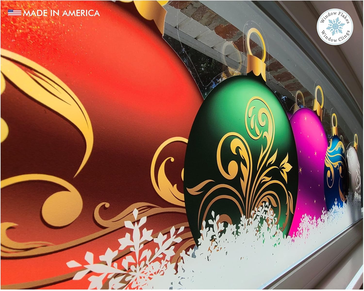 No holiday decorating is complete until this beautiful snowy decal border of colorful Christmas ornaments has been put up. This festive window or mirror border is stunning, and complements any décor. At 36" in length and 12" tall, it is printed on both sides so the vibrant colors are equally visible from both inside and out. Easy to apply and reusable, you will wonder how your room ever looked complete without it! Ideal for use at home or as part of a restaurant or retail store display.