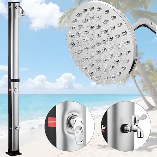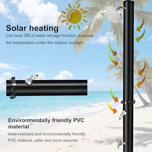 Experience the ultimate convenience of outdoor bathing with our Outdoor Camping Solar Shower, designed for those who love to enjoy nature without sacrificing comfort. This freestanding shower boasts a generous 10-gallon (38L) water capacity, providing ample water for you and your family to rinse off after a refreshing swim or to cool down on hot summer days. Crafted from durable PVC with a brass body and zinc fittings, this solar shower is built to withstand outdoor elements while ensuring long-lasting performance. With a maximum water temperature of 60°C (140°F) and a maximum water pressure of 3.5 Bar, you can enjoy a warm, invigorating shower in your backyard, at the beach, or during camping trips. The thoughtful 2-section design allows for easy assembly and disassembly, making it simple to store when not in use. The 360° swivel shower head provides effortless control for a comfortable shower experience, while the convenient middle faucet lets you adjust water temperature and pressure with ease. Ideal for outdoor enthusiasts, our solar shower requires no electricity, leveraging the sun’s energy for heating. Simply connect it to a standard garden hose or a G1/2” water hose, and you are ready to enjoy a soothing outdoor shower. Whether you’re at the campsite, poolside, or in your backyard, our Outdoor Camping Solar Shower enhances your outdoor experience by providing a refreshing way to cleanse and relax. Order now and transform your outdoor adventures into a more enjoyable experience! If you have any questions, please feel free to contact us, and we will respond within 24 hours.