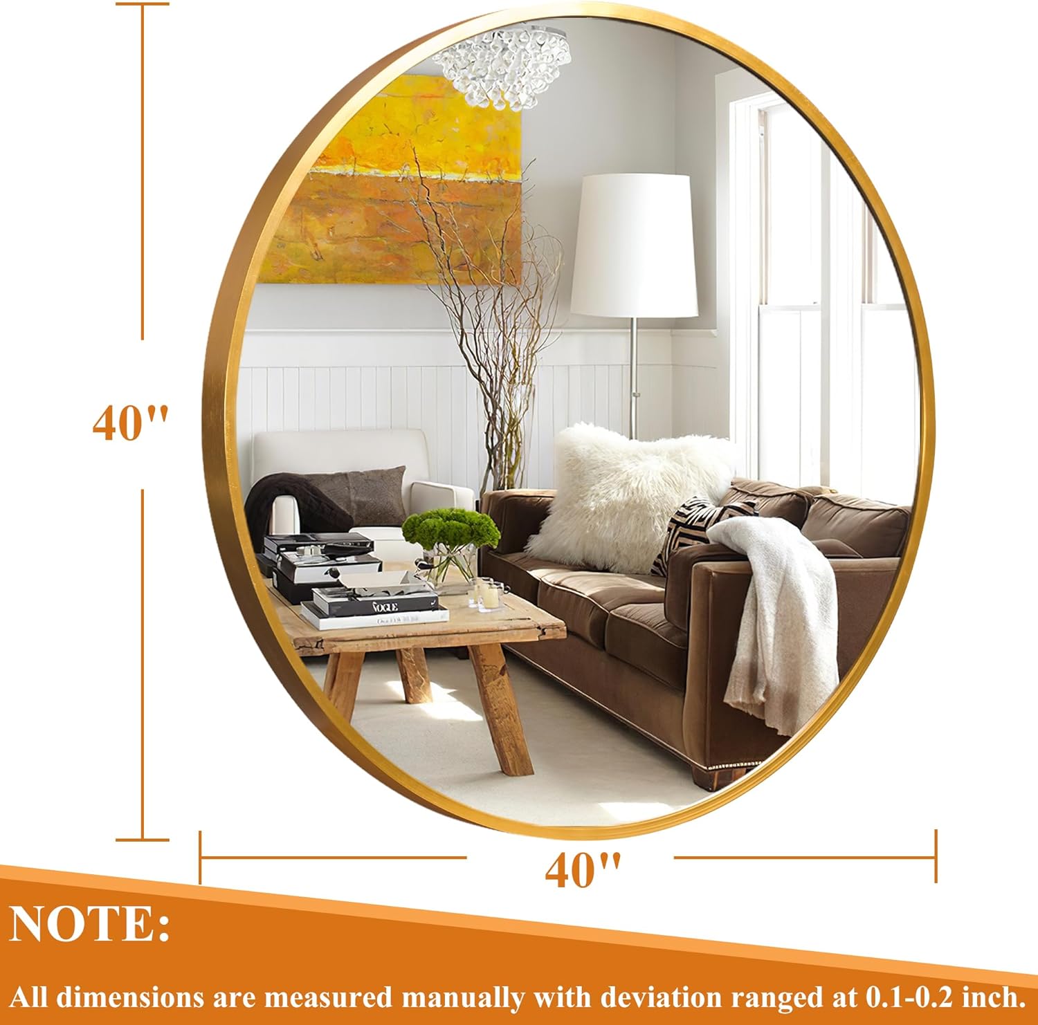 GlasFlength 39" Round Mirror Golden Circle Mirror for Wall Mirror Large Bathroom Mirror for Wall Wall-Mounted Vanity Mirrors with Aluminum Alloy Frame Hanging Decorative Mirrors for Bathroom