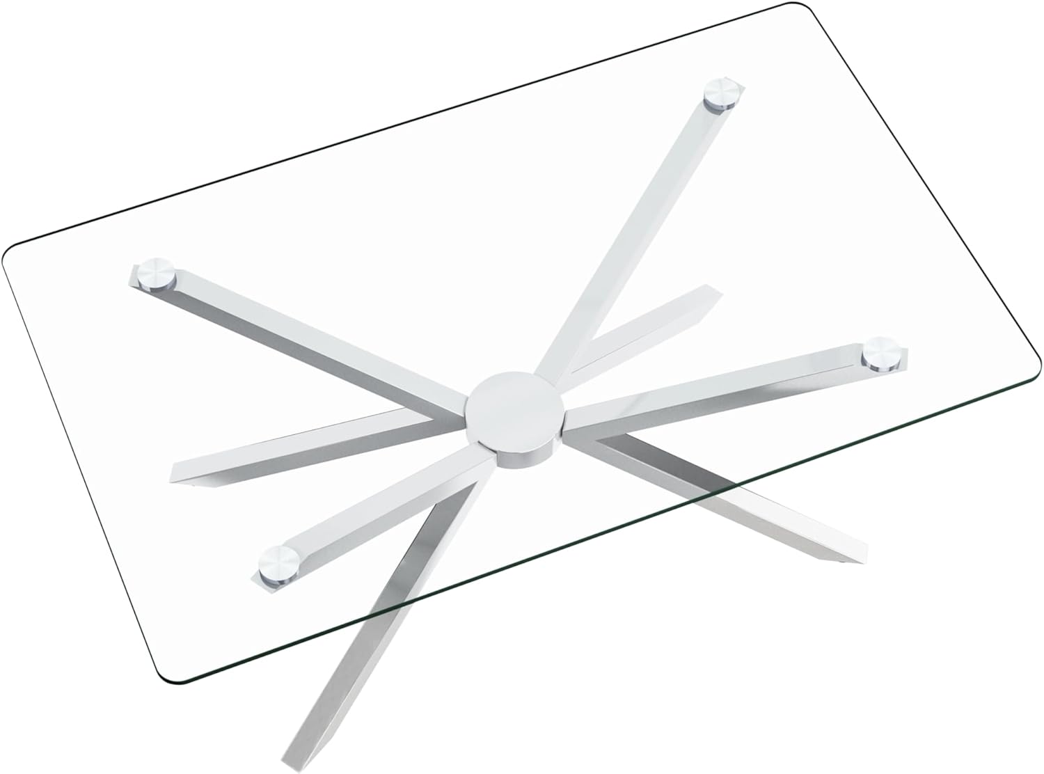 39.37" Rectangular Clear/Black Tempered Glass Coffee Table,Stylish Design with Black/White/Gold Metal Legs, Coffee Table for Living RoomSpecificationMain Material: Tempered Glass, MetalProduct Dimensions: 39.37"L x 23.62"W x 16.93"HProduct Features1.Product Dimension: W39.37"x D23.62"x H16.93",Net weight:30.8lbs,Weight capacity: 220lbs.2.Modern Design: This glass coffee table features a tempered glass top and metal legs, bringing a modern feel to your indoor space.3.High-Quality Materials: The rectangular modern coffee table is made of durable tempered glass and sturdy metal legs, ensuring longevity and the ability to withstand daily use.The glass material does not stain easily, Easier to clean than wooden surfaces.4.Product details: The metal legs provide stability and durability, with adjustable feet at the bottom to help balance the table.5.Versatile Application: Ideal for use in offices, stores, living rooms, and guest rooms, it can serve as a coffee table or a sofa table to meet various needs.6.Easy Assembly: The installation process is quick and straightforward, with a user manual included in the packaging for easy reference.