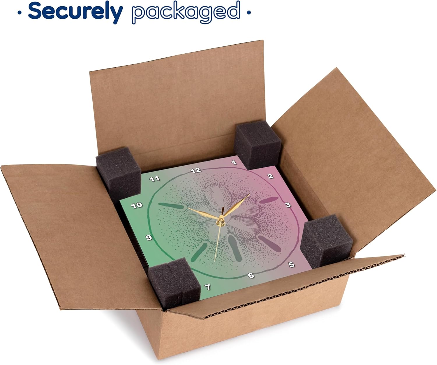 Pink and Lime Sand Dollar beach theme art Wall Clock is a wonderful complement to any room in your home or office. Made of durable high grade aluminum. This frameless clock has a high gloss mirror like, UV coated, scratch resistant finish and is suitable for a moist environment. Sizes available range from 10" x 10" to 15" x 15". Requires one AA battery; not included. Battery box is not covered.