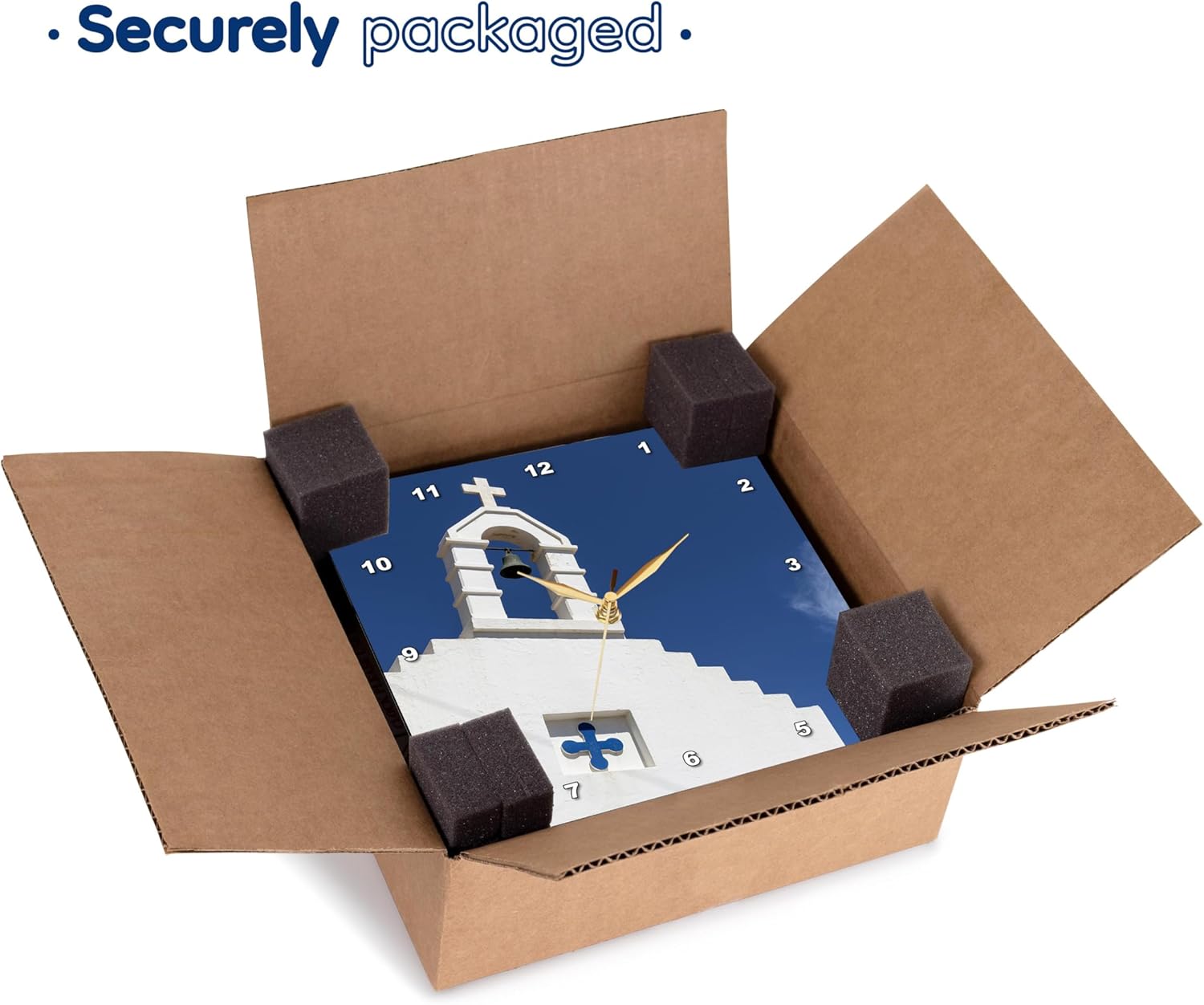 3dRose Wall Clock Silent - 15 inch - Greece, Imerovigli. Steeple of Greek Orthodox Church. - Places