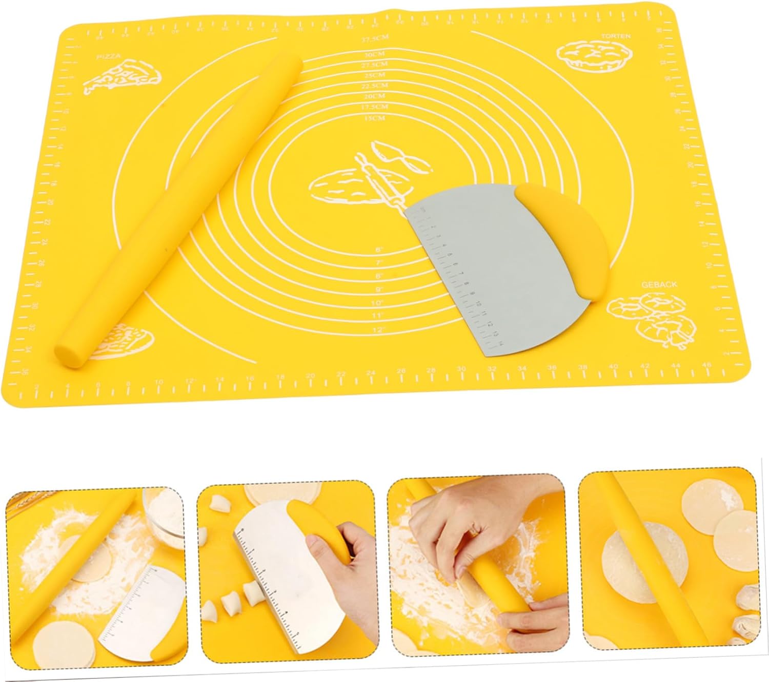 Package List 3 x baking tools Features -Product Info:Kneading pad set -Size: 50.00X40.00X0.30cm/19.65X15.72X0.12in dough roller -Material: Silicone kitchen tools -Color: Yellow non-stick dough mat - This kitchen tool will provide more convenience and warmth for your home life roller for baking. - tools, easy to use and hold rolling pin. - Non-stick surface, making dough easy to roll and easy to clean practical rolling pin. - Secure and firm handles that you can apply maximum pressure dough mat. - Widely used in making pastries, handmade noodles, pizza and bread simple dough mat.Goods Informationroller for baking This set of baking tool is made of silicone material, which is and can be used for a long time.dough roller It is an tool for making desserts for family, friends and guests.dough mat for DIY or professional use in cake shops, bakeries etc