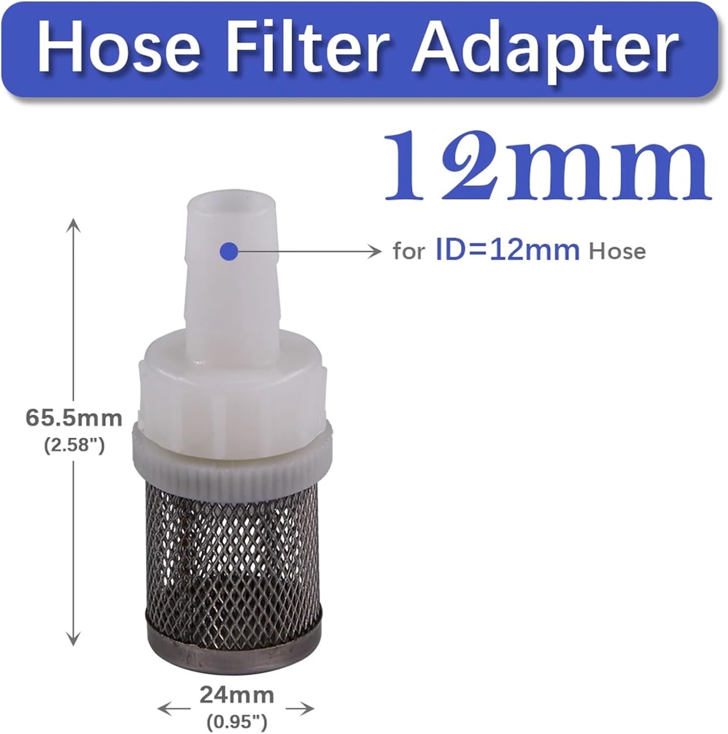 Gardening Tools4-19mm 1/2" Hose Filter Garden Irrigation Water Pump Protection Aquarium Tank ABS Plastic Pagoda Joints Strainer Mesh PercolatorDescription:- Product material is ABS plastic stainless steel, anti-wear permanent use, the filter can be used repeatedly, and the filter can be brushed with a toothbrush- The miniature front can effectively block the damage of the large particle rust and sediment to the water purifier after the tap water is stopped, and prolong the life- Widely used in washing machine filtration, car washing water sparyer filtration, garden irrigation filtration- HEPA Filters - Filters that capture or retain large amounts of particulates and solids. The filter has a large filtration area, stable filtration effect, excellent filtration depth and outstanding dirt holding capacity, which means less cleaning frequency and lower overall maintenance costs. - EASY TO INSTALL & CLEAN Little to no routine maintenance no special inspection tools few removable parts The unique design structure makes the water filter easy to clean and assemble easy to use even in a small space and to meet the diverse requirements for size flow rate and filtration accuracy Easy to remove for cleaning by unscrewing the nut Widespread use The application of filters has become quite common. Because they can work accurately and stably in very harsh conditions and require little maintenance. Ideal for home water filtration, greenhouse irrigation, agricultural irrigation and first filtration of garden irrigation systems. It saves water, energy and improves plant quality. It is an essential irrigation product for the transition from traditional agriculture to modern agriculture. - This filter is suitable for pumps, sprayers, car washes, oil pumps, high pressure plunger pumps, industrial equipment, etc.Specification:- Material: ABS Plastic,Stainless steel- Thread: 1/2" 20mm Thread- Pagoda Hose Adapter Size: for ID 4/6/8/10/12/14/16/19mm Hose- Working Medium: Water, OilPackage list:1/3/5pcs * Hose FilterNote:1. Due to the difference between monitors and light effect, thepictures may not reflect the actualcolor of the item.2. Please allow slight error due to manual measurement. Thanks for you