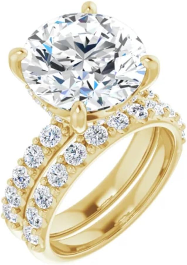 4-6CT Round Cut Moissanite Solitaire Ring Diamond Engagement Rings for Women Wedding Bridal Set Pave Eternity 10k/14k/18k Solid Gold Silver Anniversary Promise Gift for Her►The stone was originally cut and polished by our skilled craftsmen, the stones in jewelry are 100% handcrafted. Moissanite is a great alternative to mine diamonds.► Moissanite Details→ Main Stone Shape: Round Moissanite→ Main Stone Weight: 4 to 6 Carats→ Stone Color: Colorless→ Stone Clarity: VVS→ Band Width: 2 mm→ Mohs Scale : Moissanite 9.25→ Refractive Index : 2.65 (Moissanite)► Metal details→ Metal Type: 925 Silver / Solid Gold→ Metal Purity: 925 Silver / 10k/14k/18k Solid Gold→ Metal Tone: White/Yellow/Rose Gold→ Metal Stamp: 925/10K/14K/18K
