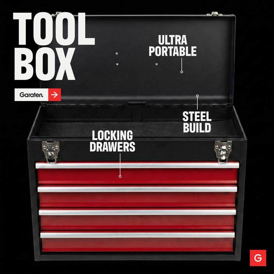 | Other Special Features of the Product | 4 Sliding Drawers, Heavy Duty Latches, Lockable Lid, Metal Construction, Portable Design |