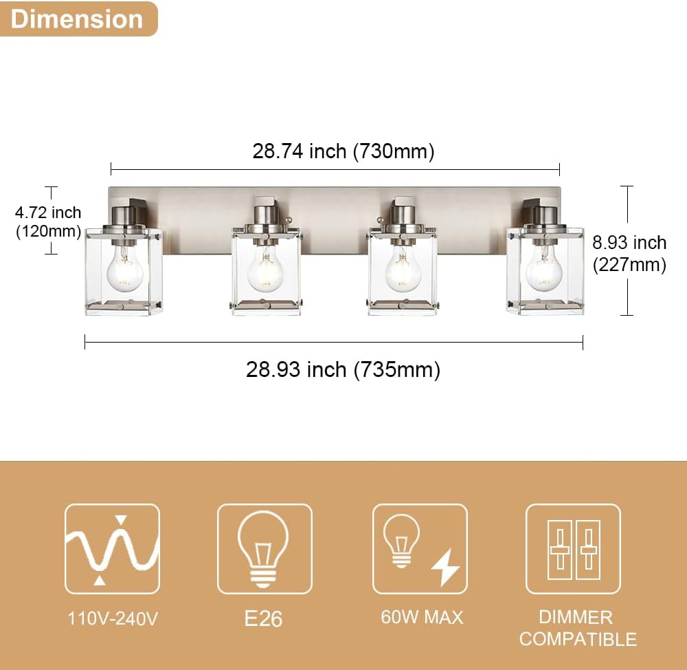 | Included Components | (NOTE: Bulb NOT Included), Brushed Nickel Lamp Body, Instruction Manual, Rectangular Clear Glass Shades * 4, Tool Kits |