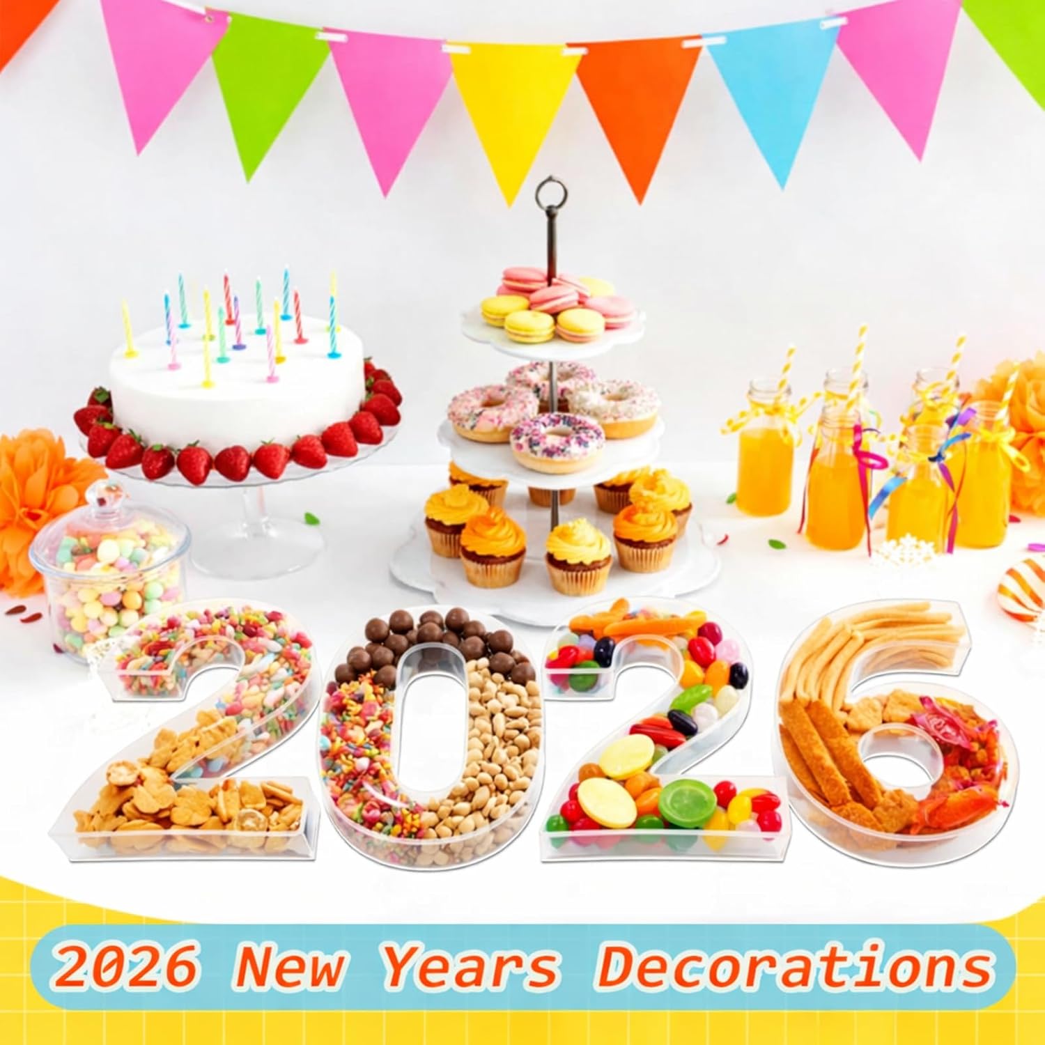 Features: Convenient Transport: Constructed from lightweight acrylic, these charcuterie numbers are easy to transport, even when filled with food. This makes it ideal for occasions where you need to move around or serve food in different locations. Ideal Size for Food Serving: Each one of these charcuterie numbers falls between a length and height of 200mm and 255mm. This large yet attractive size is nice for events as it efficiently holds and displays an ample quantity of food. Specifications: Material: acrylic Color: transparent Size: Length: between about 200mm and 255mm Height: between about 200mm and 255mm Package includes: 4 x Acrylic 2026 charcuterie board numbers Notes: Manual measurement, please allow slight errors on size. The color may exist a slight difference due to different screen displays. The product itself does not have a lid. Please clean the surface before putting food in it. When using it, please be careful not to pull the tray wall hard to prevent cracking.