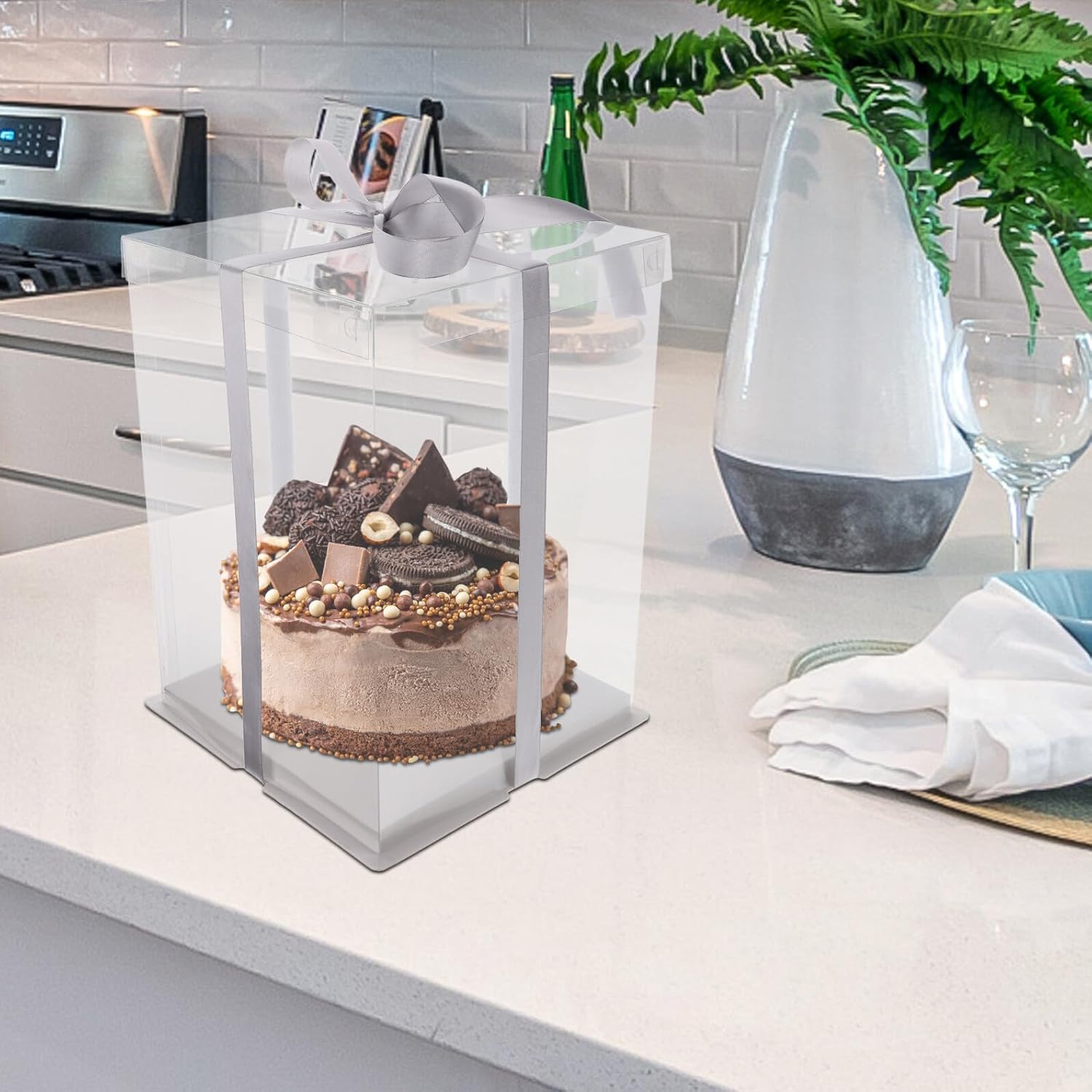 Package List 4 x cake boxes Characteristics -Material: PET, white card -Product Info:Cake box -Note: The color of the ribbon is . - Portable design, more convenient and simple to carry, practical and transparent cake boxes. - The cake box can be in direct touch with food, making your baking life healthy and caja transparente para pastel. - Used for a table to store and organize your food, or with small things plastic cake boxes. - Suitable for shops, bakeries, cake shops, tearoom, amusement schools and home use cake carriers. - The material is and , which is wear and practical for the long time use.Goods Informationclear cake containers This is a practical cake packing box.plastic cake boxes Featuring multipurpose, this cake box can protect your foods from , dust etc.transparent cake boxes Manufactured of , for use.clear boxes for packaging The material is very , and you can rest assured to use it
