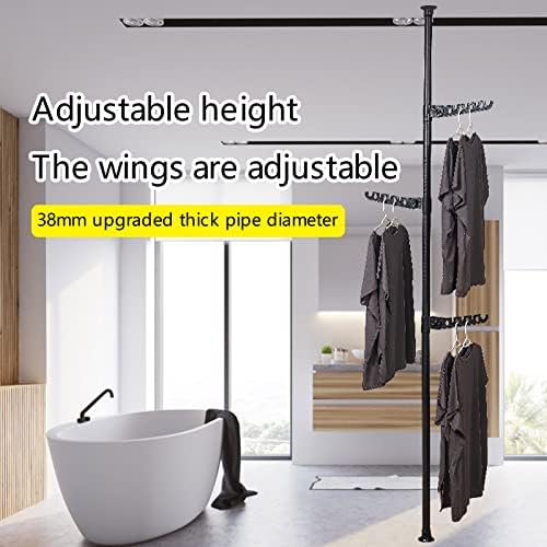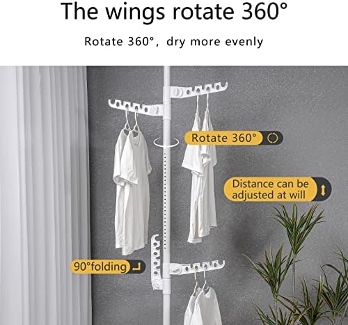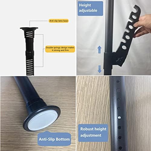 Introducing our rust-proof adjustable clothes drying rack, the perfect solution for both indoor and outdoor use. Designed as a versatile coat rack and corner drying rack, this innovative product enhances your space while offering practical functionality. With four sturdy hangers, each measuring 11.8 inches, you can easily hang over 20 dresses, making it ideal for laundry days or organizing your wardrobe. The powder-coated finish ensures that the rack remains free from peeling and discoloration, enhancing its durability and longevity. Our clothes drying rack features TPE anti-skid bottoms on both ends, ensuring stability while in use. Plus, the built-in spring fixing mechanism provides added security for your garments. Installation is a breeze with our one-touch fastener, making it user-friendly and quick to set up. This multifunctional rack is suitable for various environments, including your living room, bedroom, balcony, windowsill, office, and bathroom. Whether you're drying delicate items or displaying your favorite outfits, this rack helps maintain a clean, tidy, and comfortable space. Crafted from high-quality stainless steel composite pipes, ABS, and PP, this product is designed to withstand daily use. With an adjustable size ranging from approximately 90 to 122 inches and a lightweight design of just 5.72 lbs, it's easy to move and adapt to your needs. **Installation Tips:** When extending the vertical pole to both the ceiling and floor, secure the position and gently shake the pole to ensure it is firmly set up. **Package Includes:** - 1 x Garment Rack - 1 x Instructions Elevate your drying and organizing experience with our adjustable clothes drying rack, combining practicality and style in any setting.
