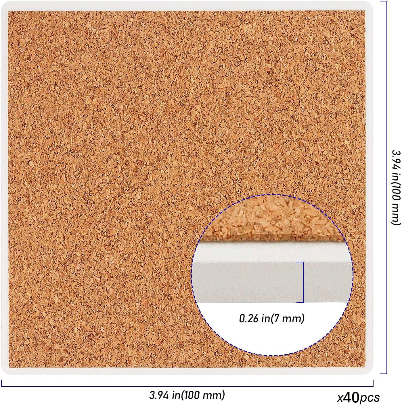 About Us ZEONHEI is committed to providing our customers with products that are closely related to daily life. We actively convey our serious attitude towards product quality, just to win customer satisfaction. Follow our store as we continue to introduce new products. About The Advantages:The cork backing pads stays stable on the tabletop and does not slide easily, so you don't have to worry about scratching any surface. These 4 x 4 ceramic coasters are beautifully crafted and their elegant look adds charm to your home. Available for DIY craft projects, perfect for you to unleash your creativity and make personalized coasters. These white ceramic coasters can be used not only as coasters on your table at home but also as birthday or holiday gifts for colleagues, friends, or family. Product Details: Material: Ceramic, Cork Size: 4 x 4 x 0.3 inch Color: White Parcel Contents: 40 x Ceramic Coasters