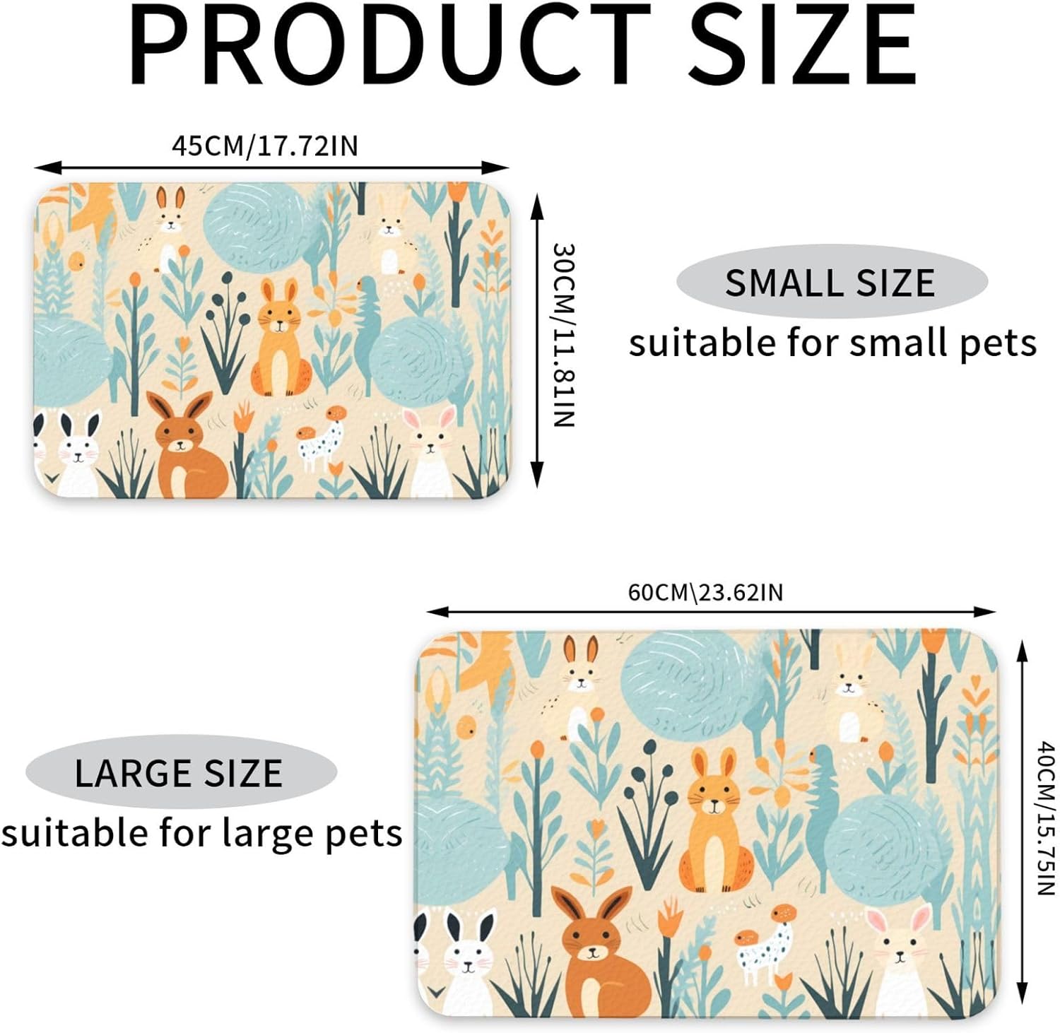 To create a clean and comfortable dining environment for your pet, our 40x60cm Lots of rabbits printed pet absorbent leather non-slip tablecloth is your ideal choice. This tablecloth uses a composite process of polyurethane (PU) surface and non-slip rubber bottom layer. The surface UV printing technology makes it waterproof and scratch-resistant, and the diamond texture on the bottom provides strong grip. It absorbs water quickly in 3 seconds, effectively preventing your pet's paws from getting wet, while protecting your floor from water damage. Special anti-fouling treatment makes cleaning easy, and hair and food residues can be wiped clean. Suitable for all kinds of pet food bowls and automatic feeders, it can be used in both indoor and outdoor scenes. It supports machine washing or wet cloth cleaning, and can be curled up to save space when stored. The size contains a reasonable process error of 1-3cm, please refer to the actual product. This multifunctional tablecloth is an efficient and convenient solution for you to protect furniture and maintain pet dining hygiene.