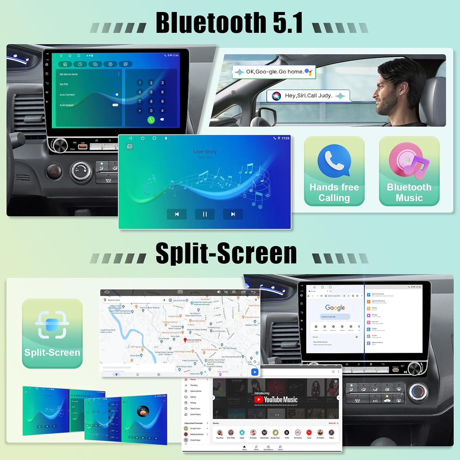 | Connectivity Technology | Wired Conection: USB (Android Phone: Mirrorlink), Wireless Connection: Bluetooth & Wi-Fi (IOS/Android: Carplay & Android Auto & Mirrorlink) |