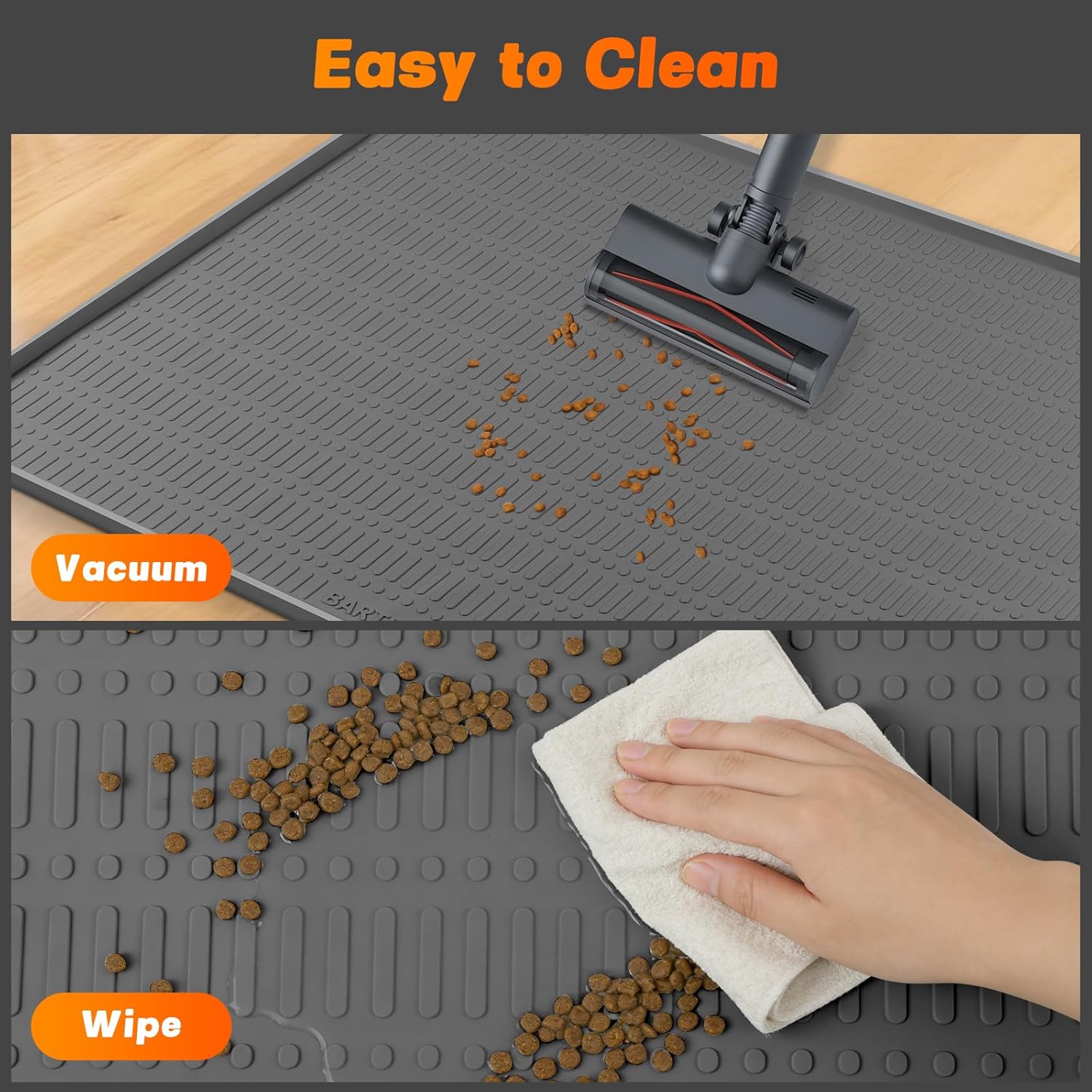 Features Kalolary Silicone Pet Feeding Mat isn’t just a practical accessory—it’s a thoughtful addition to your pet care routine that balances functionality, and convenience. Travel & Outdoor Ready: Lightweight and portable, it's ideal for trips, camping or use on your patio — anywhere your pet eats. Universal compatibility: It works perfectly with bowls made from any material, including stainless steel, ceramic and plastic, and fits most feeding stations. The elegant color mat seamlessly with any home decor, adding a touch of sophistication to your indoor space.Give your pets a clean feeding space and yourself peace of mind with this essential pet mat. Specification Material: Silicone Color: There are four colors: beige, light green, dark gray, and light gray. Size: 47" x 35" (119cm x 88cm)