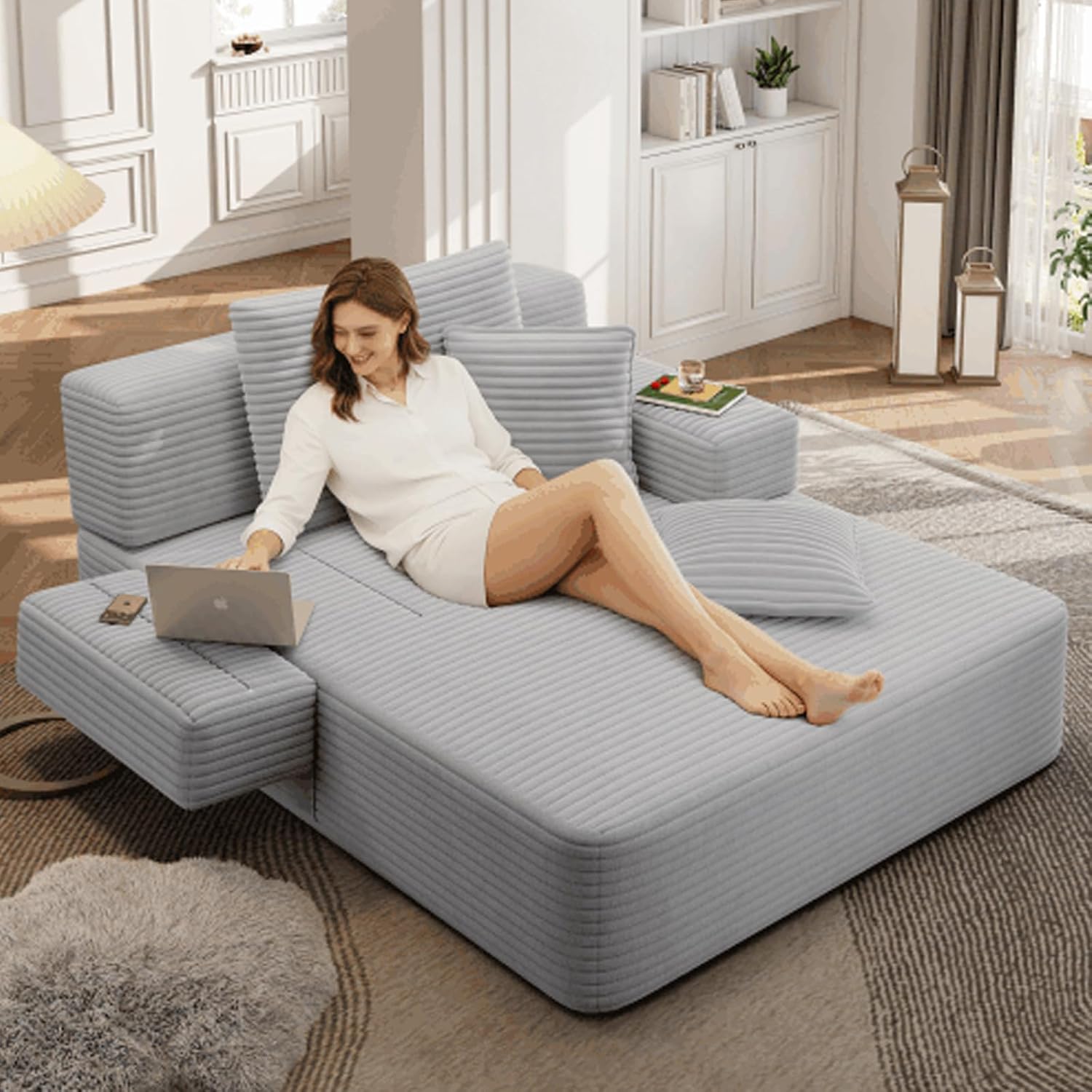 | Included Components | Frameless Corduroy Chaise Lounge with 3 Pillows and Side Pockets |
