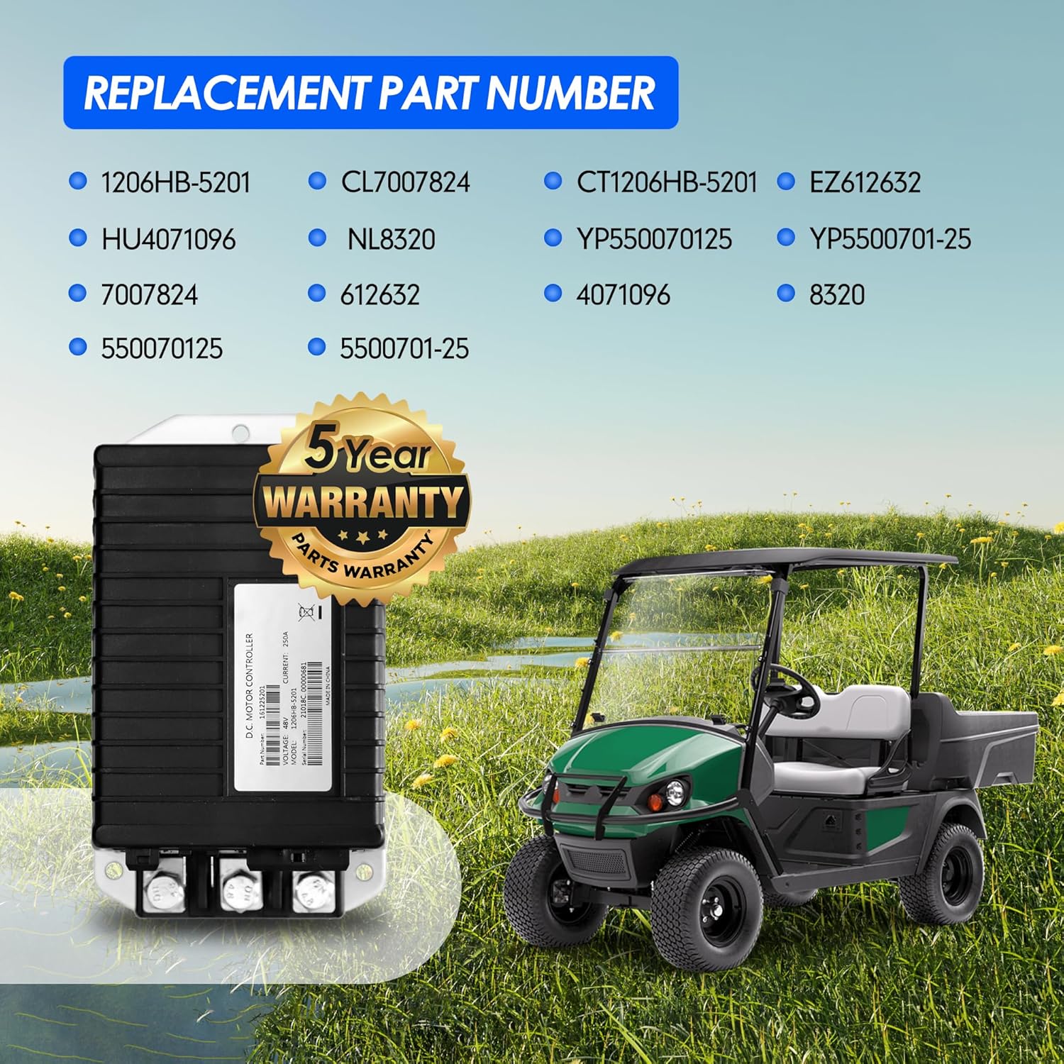 Specifications: Color: Black Size: 10.63 x 7.48 x 4.72 inches Voltage: 48V Current: 250A Weight: 1.4kg IP Grade: IP 67 Compatible Make: EZGO, Cushman Compatible Model: TXT, Express S4, EXpress L6, Terrain 250, MPT 800, MPT 1000, ST Sport II, Cushman Hauler 800, Cushman Hauler 1000, Shuttle X4 Compatible Year: 2011-UP Part Type: Controller Throttle Type: ITS OEM Part Number: 612632