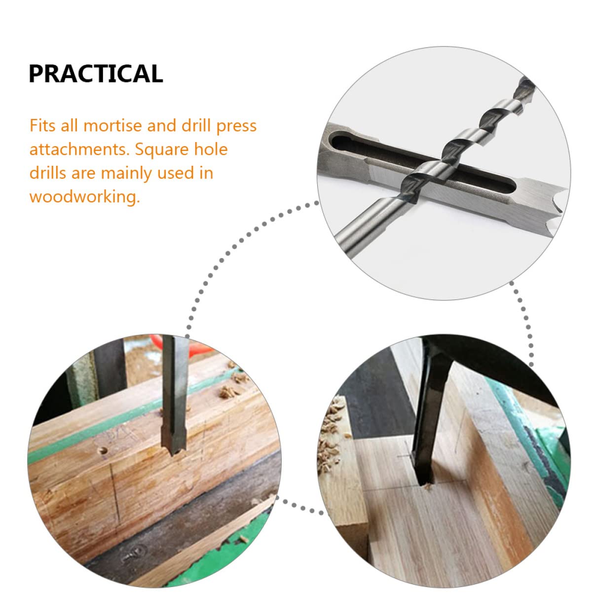 Package Include 1 x drill bit(6.4mm) 1 x drill bit(8mm) 1 x drill bit(9.5mm) 1 x drill bit(12.7mm) Characteristics -Material:Alloy steel square drill bits for woodworking -Size:21.00X0.80X0.58cm/8.25X0.31X0.23in woodworking bit -Size:21.00X1.27X0.95cm/8.25X0.50X0.37in mortise drill bit -Color:Silver woodworker's square tenon drill bit -Size:18.00X0.64X0.44cm/7.07X0.25X0.17in drill accessories -Size:21.00X0.95X0.69cm/8.25X0.37X0.27in drill bits for wood -It is a nice helper for wood carving, can be matched with other tools, to have better using feeling drill bit for wood. -Made with safe alloy steel materials, with workmanship, not easy to break, withstand longer service life woodworking tools. -Aimed for faster wood removal, you can easily work with wood faster and also leave a smooth finish drill bit kit. -Suitable for work like wood carving, making sculptures, building furniture and many other uses drill bits. - of the drill sleeve is in a flat plane, which the situation from bursting at the beginning of use drill wood carpentry tools.Goods Descriptiondrill bit kit Are you in search of wood drill bits kit? Or whether you are looking sturdy wood drill bit that can do multiple jobs? , ! Our product can meet your needs.drill tools woodworking Using alloy steel materials, with workmanship, stable working performance, to offer you better service