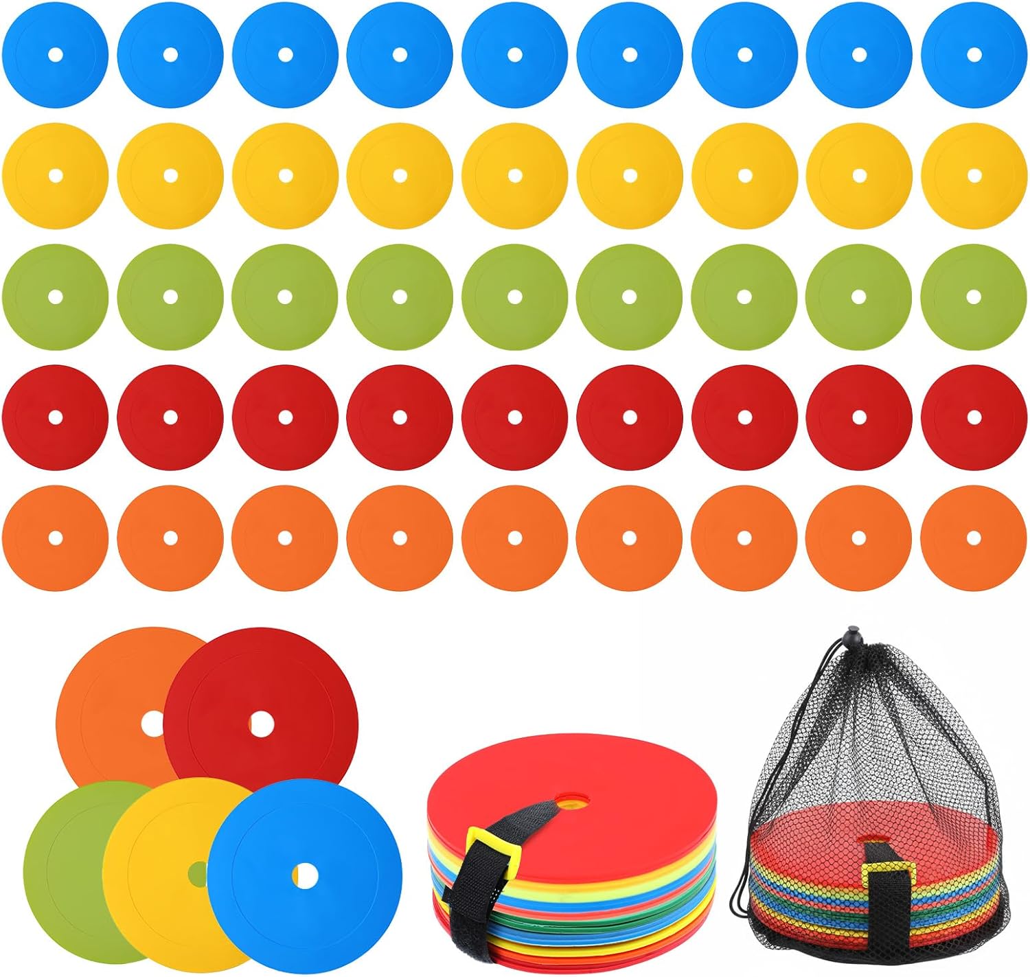 Welcome to our store!Features:Non-slip Design: These flat, cone-shaped markers feature an anti-slip design on the bottom to prevent players from slipping and are securely fixed in place, preventing movement during training and ensuring optimal results. Our anti-slip field markers are suitable for various field surfaces and can be used normally even in rainy weather.Eye-catching Colors: Our flat, cone-shaped markers come in five colors, each highly visible, helping players to quickly locate themselves, providing a greater viewing distance, and being unaffected by strong light. The striking colors also prevent accidental falls due to obstructed vision.Specifications:Material: PPColor: Yellow, Blue, Orange-Red, Green, RedSize: 6 x 6 x 0.08 inchesSuitable For: Football Sports Speed Agility PracticePackage Includes:50 Pcs x 6 inch Flat Cones Spot MarkersNotes:Manual measurement, please allow slight errors on size.The color may exist a slight difference due to different screen displays.