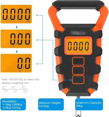 Introducing our versatile Hanging Weight Scale, the perfect companion for your fishing, industrial, and heavy-duty weighing needs. Designed to measure weights between 0.05 kg to 300 kg, this portable electronic scale is ideal for a wide range of applications, from weighing your catch on fishing trips to lifting heavy objects in industrial settings. Featuring a precise measurement range from 15g to 50kg, our scale offers exceptional accuracy with divisions of 0.005kg for weights under 10kg and 0.01kg for heavier items. Easily switch between units with the option to measure in Kg, LB, or OZ, making it suitable for various user preferences. The scale’s design prioritizes ease of use and reliability. Before weighing, simply ensure that the hooks and handles are in good condition and that items are securely attached to prevent slippage. For best results, maintain the scale in a vertical position while weighing to ensure accurate readings. Included with your purchase is a 50kg digital scale, a handy screwdriver for setup, and a comprehensive English user manual to guide you through the operation. Please note that this product requires 2 AAA batteries, which are not included. Our commitment to quality means that we stand by our product. Should you encounter any issues, our dedicated customer service team is always available to assist you, ensuring you can use our Hanging Weight Scale with confidence. Transform your weighing experience today with a scale that combines functionality and reliability for all your needs.