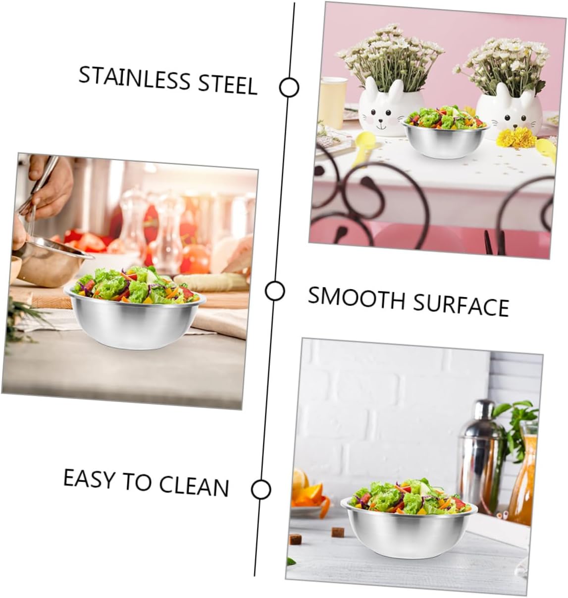 Package Include 1 x stainless steel mixing bowl 20cm 1 x stainless steel mixing bowl 22cm 1 x stainless steel mixing bowl 24cm 1 x stainless steel mixing bowl 26cm 1 x stainless steel mixing bowl 28cm Characteristics -Material:Stainless steel dumpling filling mixing bowl -Size:28.00X28.00X9.00cm/11.00X11.00X3.54in Baking Mixing Bowl -Size:26.00X26.00X8.50cm/10.22X10.22X3.34in egg mixing bowl for baking -Size:24.00X24.00X8.00cm/9.43X9.43X3.14in Kitchen Mixing Bowls -Size:22.00X22.00X7.50cm/8.65X8.65X2.95in Mixing Bowls For Egg -Color:Silver kitchen round basin -Size:20.00X20.00X7.00cm/7.86X7.86X2.75in stainless mixing bowls -Stainless steel mixing bowl with smooth surface, easy to clean. Simple design, practical for use. stainless steel mixing bowl -The kitchen mixing bowl is not easy to break or deform, and it can be used for a lasting time stainless steel bowl. -The food mixing bowl is very easy and convenient to clean, bring much convenience to you metal bowls mixing. -Deep bowl for mixing without any splash and can store more food at one time, keeping your kitchen neat Bowl For Kneading Dough. -The size is suitable for daily using, as much as you're mixing all your favorite snacks and foods stainless steel bowl for mixing.Goods InformationMixing would be a nice helper for you.kneading dough bowl for holding salad, noodle, soup, mixing egg, rice, etc.stainless steel bowl Are you looking for a multi-functional mixing bowl for your kitchen? The bowl is designed sturdy and designed to your kitchen cooking experience.mixing bowls stainless steel With fine crafted details, not easy to wear and tear, very practical in use