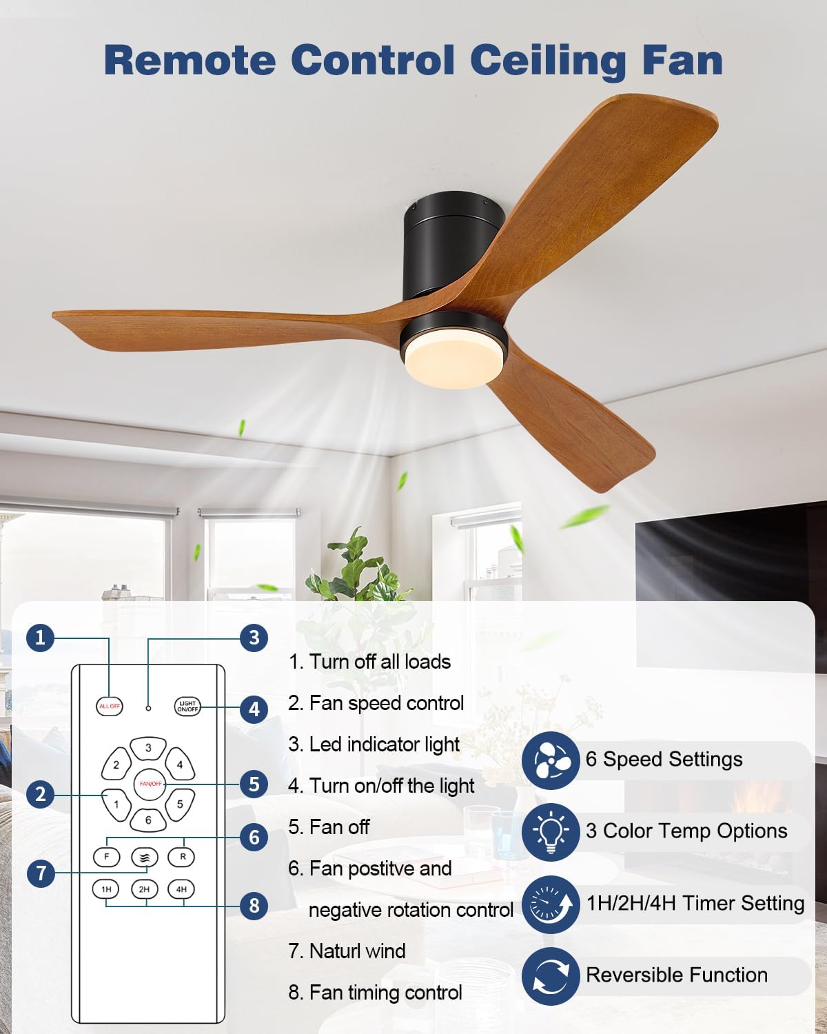 | Special Features | 3 Color Temperature, 6 Wind Speeds, ETL listed, Flush Mount Ceiling Fans, Reversible Quiet DC Motor |