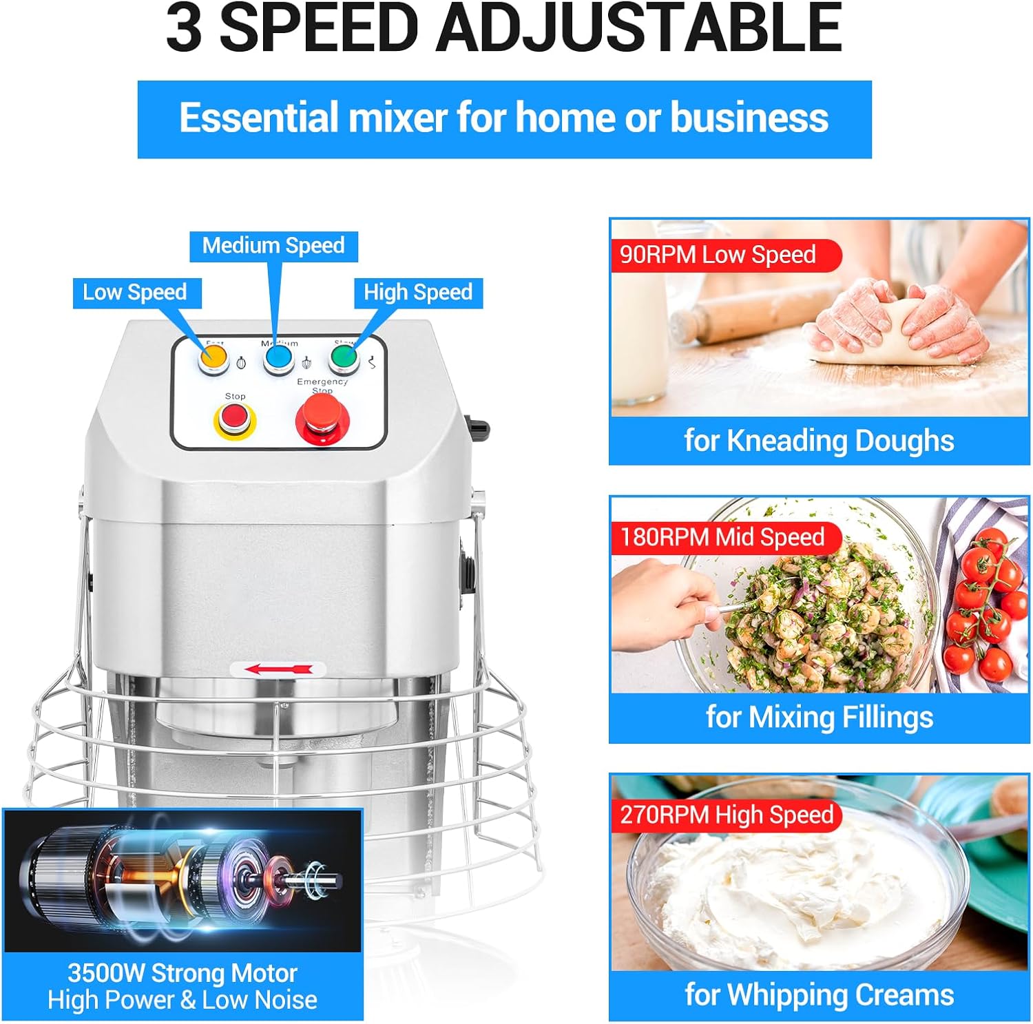 | Included Components | 1 x Commercial Mixer, 1 x Dough Hook, 1 x Flat Beater, 1 x Wire Whip |
