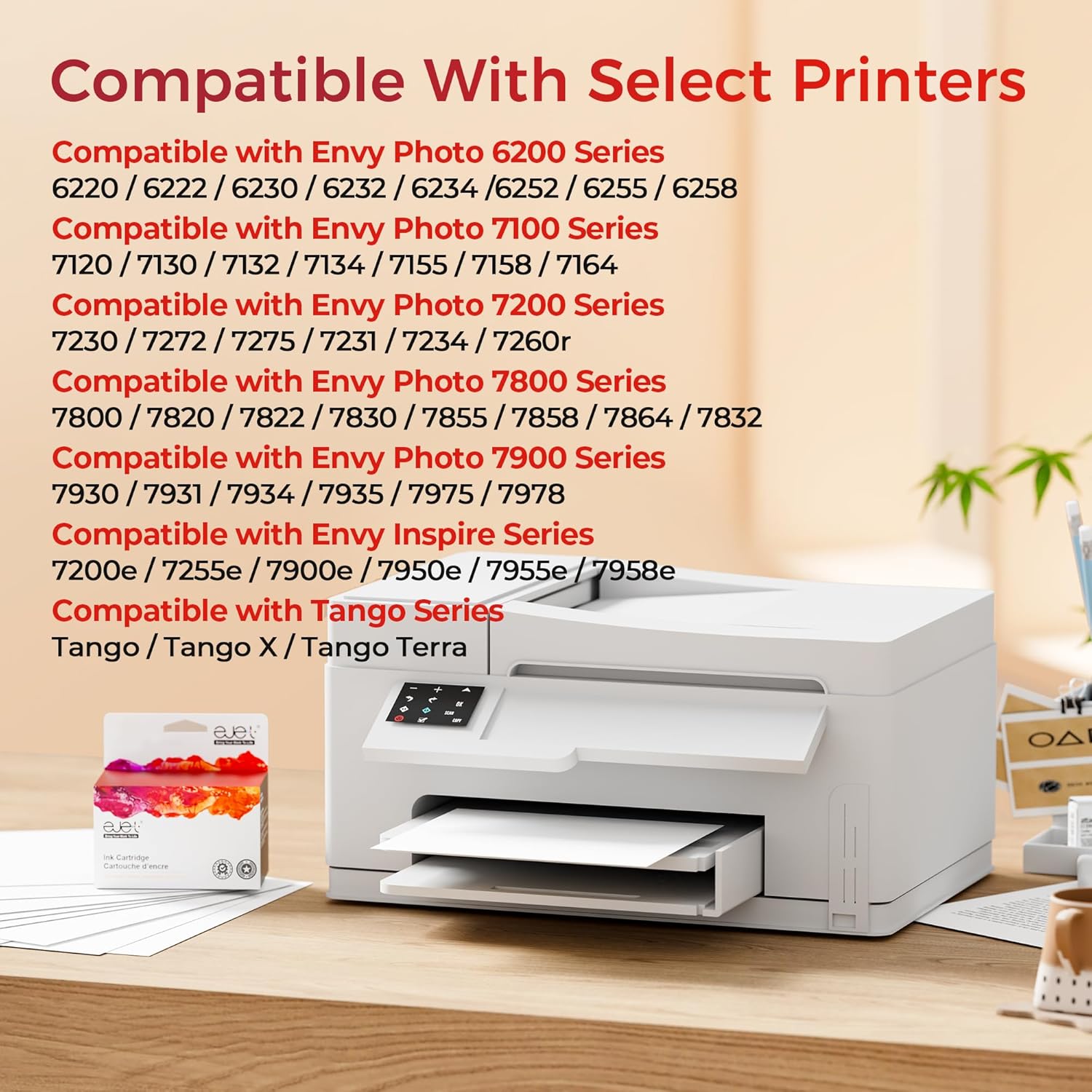 | Compatible Printer Models | for Envy Photo 6220 6222 6230 6232 6234 6252 6255, for Envy Photo 7130 7132 7134 7155 7158 7164, for Envy Photo 7820 7822 7830 7832, for Tango series Tango Tango X Tango Terra |