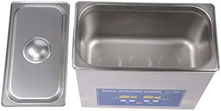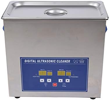 Large 6.5L Powerful Ultrasonic Cleaner can be used to clean many different applications. Home Use: Cleaning of jewelry, glass, watch, dentures, fruit and vegetables, baby bottle and toys, tableware, cosmetic brush, fishing reels and electronic equipment ... Laboratory Use: Cleaning of test tube, beaker, other lab apparatus… Medical Use: Cleaning of dental hand piece, dental l syringe needle, dental drill,false tooth ,forceps… Industrial Use: Cleaning of engine parts, injector, air cylinder, blind window, PCB board, hardware, screw and nut, bullet shell … Cleaning Agent: According to the product material choose tap water, alcohol, organic solvent… etc as cleaning fluid. Specification: Input Voltage: AC 100 ~ 120V, 50 / 60Hz Frequency: 40,000Hz Tank Material: Stainless Steel SUS304 Power: 180W Heating Power Max: 200W Time setting: 1-30 minutes adjustable Temperature setting: 0-80℃ Tank size: 13 x 7.1 x 12.2 in (L x W x H) Overall size: 11.8 x 5.9 x 5.9 in (L x W x H) Weight: 12.79 pounds Lid: Have Heating: Have Package Content: 1 × Ultrasonic Cleaner 1 × Cleaning Basket 1 × Lid 1 × Power Cord 1 × English User Manual 1 × Carton Box