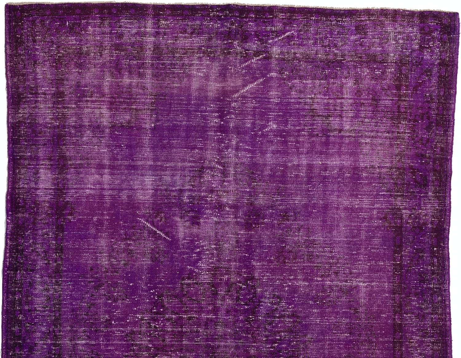 A vintage Turkish rug re-dyed in purple color for modern home and office decor. Finely hand knotted, low wool pile on cotton foundation. The rug is in very good condition, professionally-washed, sturdy and suitable for areas with high foot traffic. Dimensions: 6.5x10.2 Ft (196x308 cm) Materials: Wool, Cotton Stock No: D203