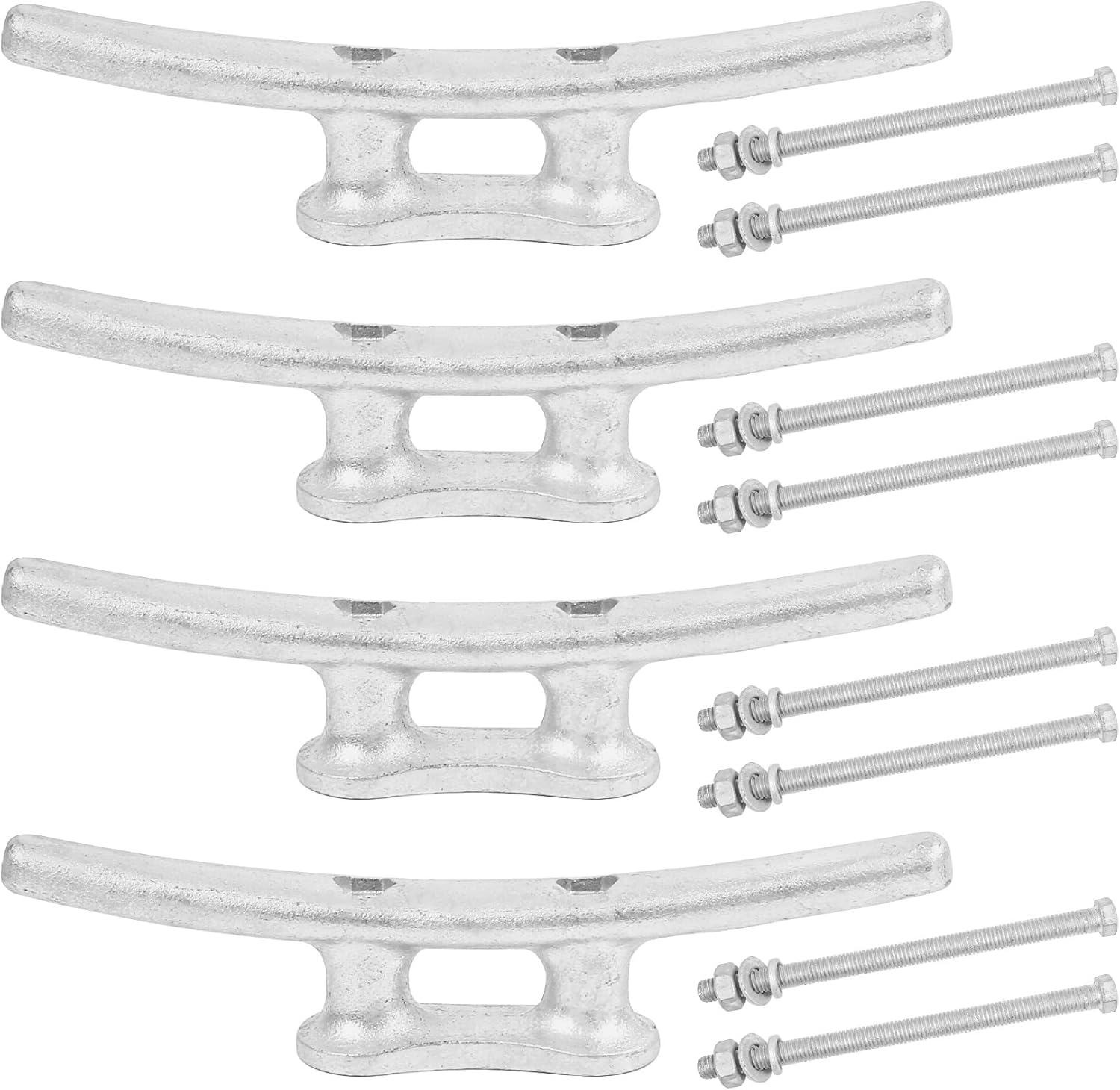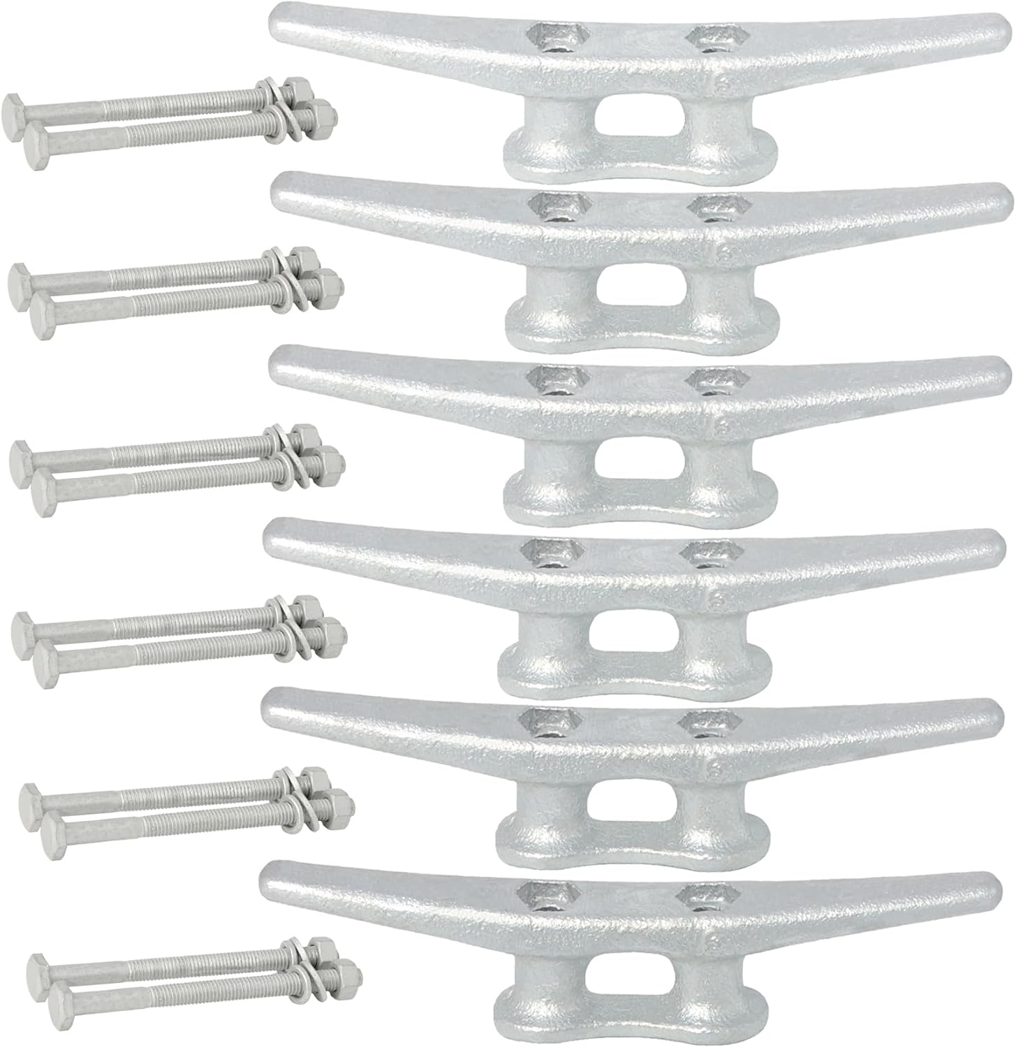 Product Description Rough Cut Hot Dipped Galvanized Iron Dock CleatRough Cast Hot Dipped Galvanized Iron Included threaded studs, washers and nuts for installation.Strong,resistance to rusting and corrosion.With these galvanized boat cleat, you can trust in their long-lasting performance and the added sturdy they bring to your applications, whether it be securing boats or other items.
