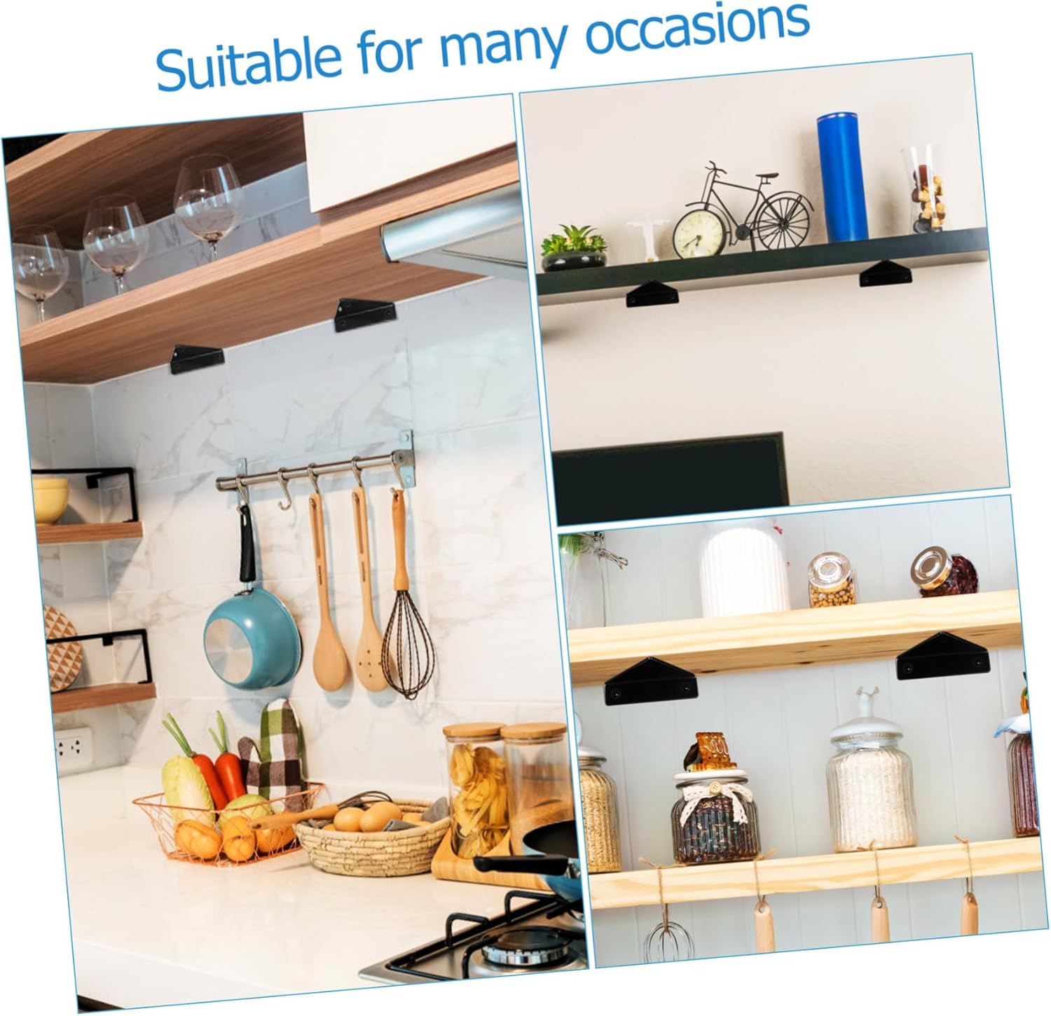 Package Include 6 x shelf brackets Features -Size: 10.00X8.00X2.50cm/3.93X3.14X0.98in shelf bracket - Simple installation: No need to worry about complicate installations, it only take a few minutes to mount them on wall triangle shelf support bracket. - Enhanced durability: Made from iron materials, these shelf brackets are strong and sturdy, have a resistance to deformation shelf bracket for floating shelf. - Stable stands: These triangular metal stands provides stability for your floating shelves without shaking or dropping off floating shelf bracket. -Material:Iron l bracket - Space-saving: The metal brackets fully use the room space for creating additional storage space at your living or working spaces corner bracket. - design: The triangular brackets are designed to attach the shelves directly under the bottom, can not be noticed easily brackets for shelves. -Color:Black shelf bracketsGoods Descriptionbrackets for shelves With the unique triangular design, they offer exceptional stability and support, making them an for a variety of applications.shelves brackets for wall They are invisible under the shelves, won't affect the home decor.l bracket These triangular brackets are made from fine wrought iron to ensure durability