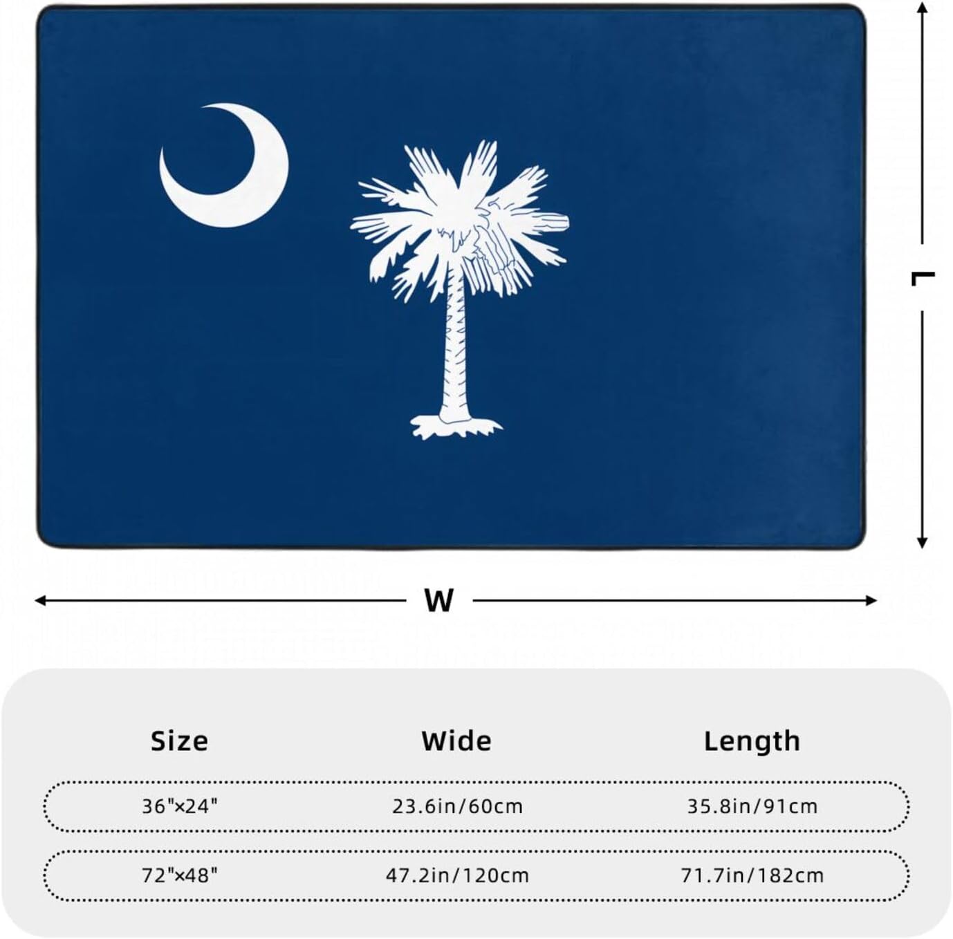 Product Description:South Carolina Flag Anti-Slip Door Mat for Home is made of high-quality Flannel, with a non-slip backing that helps prevent slipping when entering or leaving, ensuring your safety. The rubber backing prevents water and mud from penetrating the floor, keeping the doormat in place, preventing sliding, floor wear, and effectively protecting your indoor floor. it can glide under most doors without jamming or curling. making it perfect for wet areas like bathrooms and kitchens.72"x48" South Carolina Flag print indoor outdoor doormat is made to take dirt, dust, grit, mud, snow and moisture from shoes and hold onto it so that the mess doesn't make its way into your house.for a welcome doormat, front door mat, indoor outdoor rugs, entryway rug, bedroom rug, kitchen rug and mat, living room rugs, bathroom rug.Machine washable for easy care, Daily dirt, simply shake it off outside. For stubborn stains, use a brush to scrub or rinse.