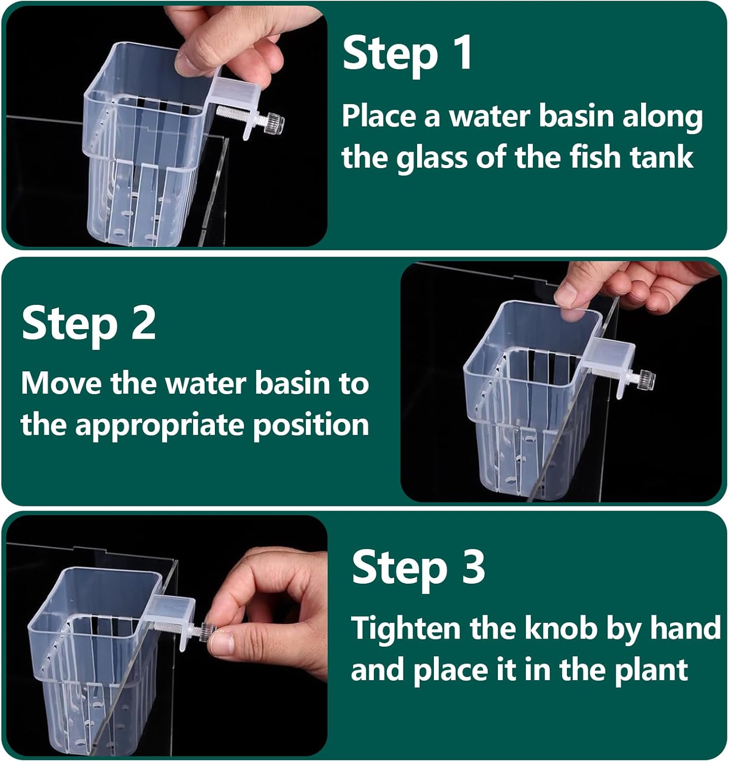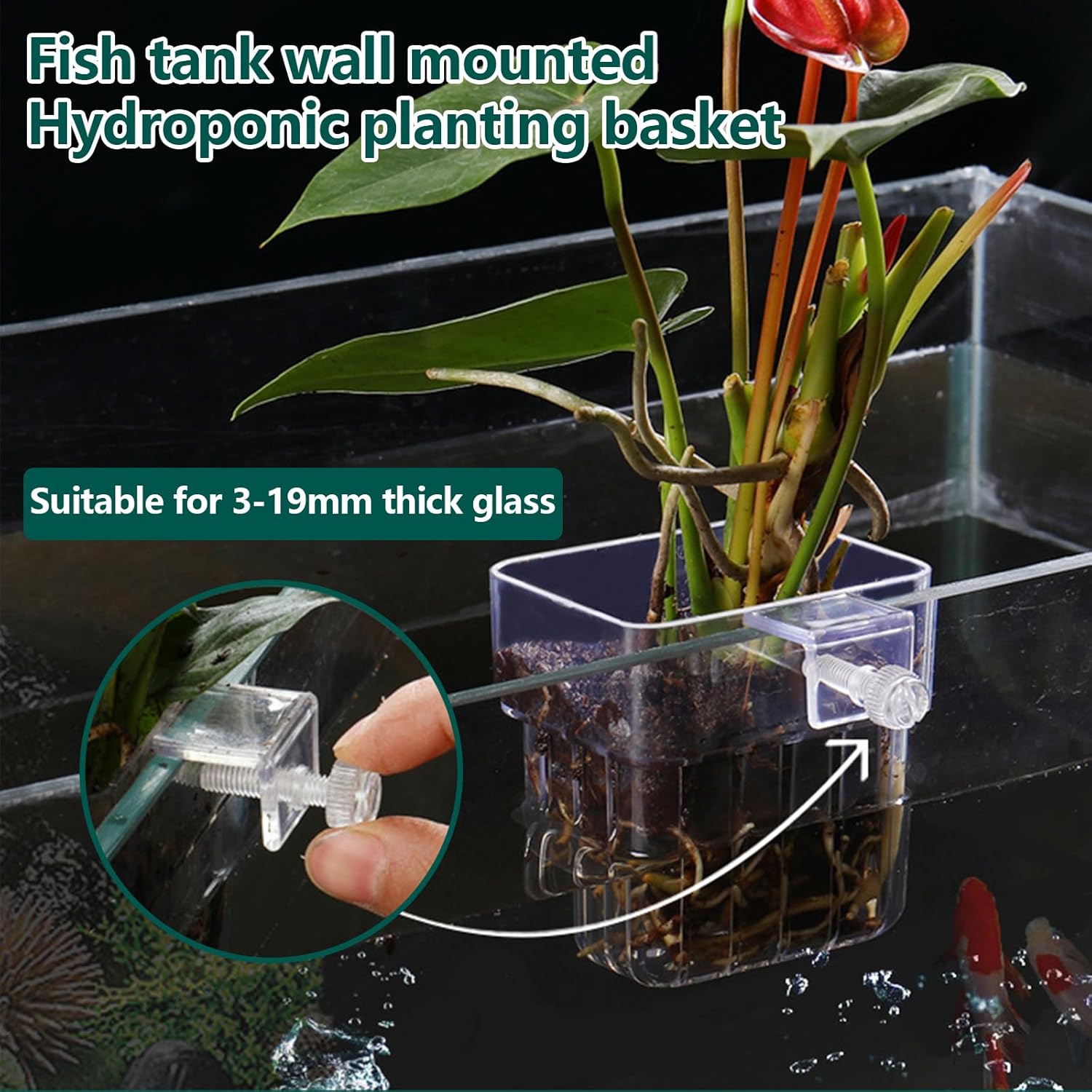 8 pcs aquarium plant holder, acrylic fish tank plants pots with hook top hanging aquatic planter cups for aquarium aquascape decorations plants cultivation (clear grey)Feature:1. Aquarium Plant Holder is suitable for glass fish tanks with a thickness of 3-19mm2. Our plant cup pot is perfect to breed aquatic plant for all types of freshwater and saltwater aquarium. Great decoration for shrimp or planted tanks.3. The holes design at the bottom of the aquatic planter cups is conducive to the growth of aquatic plant roots and creates a good water circulation in the aquarium, which promotes aquatic organisms planting and reproduction, ensures optimal growth conditions for your underwater flora.4.Stunning Visual Aesthetic: Enhance your tank's beauty with the addition of these elegant plant holders.Specification:Product size: 8*5.7*8cmProduct weight: 32.3gPacking size: 23*22* 8cmPackage weight: 271.5gColor: Clear, GreyMaterial: AcrylicpackageInside: 8 PCS Aquarium Plant Holder